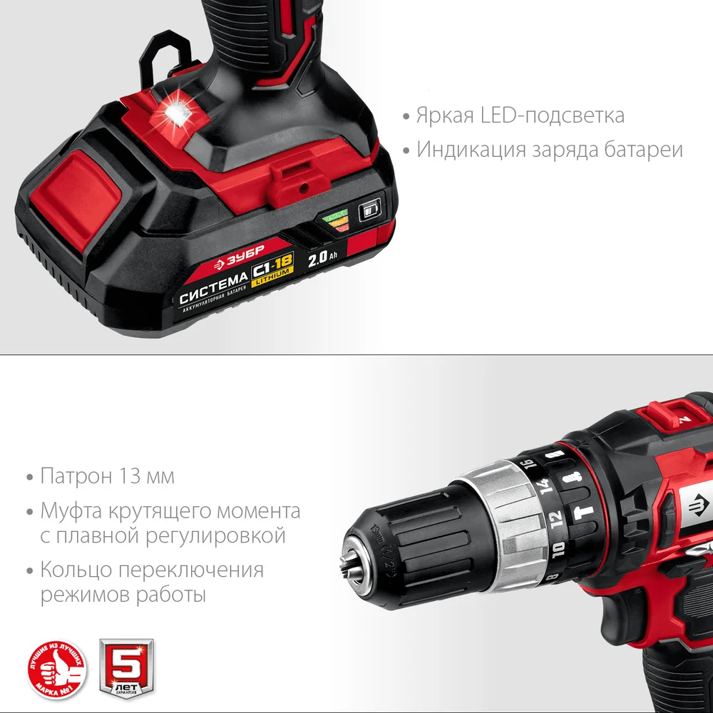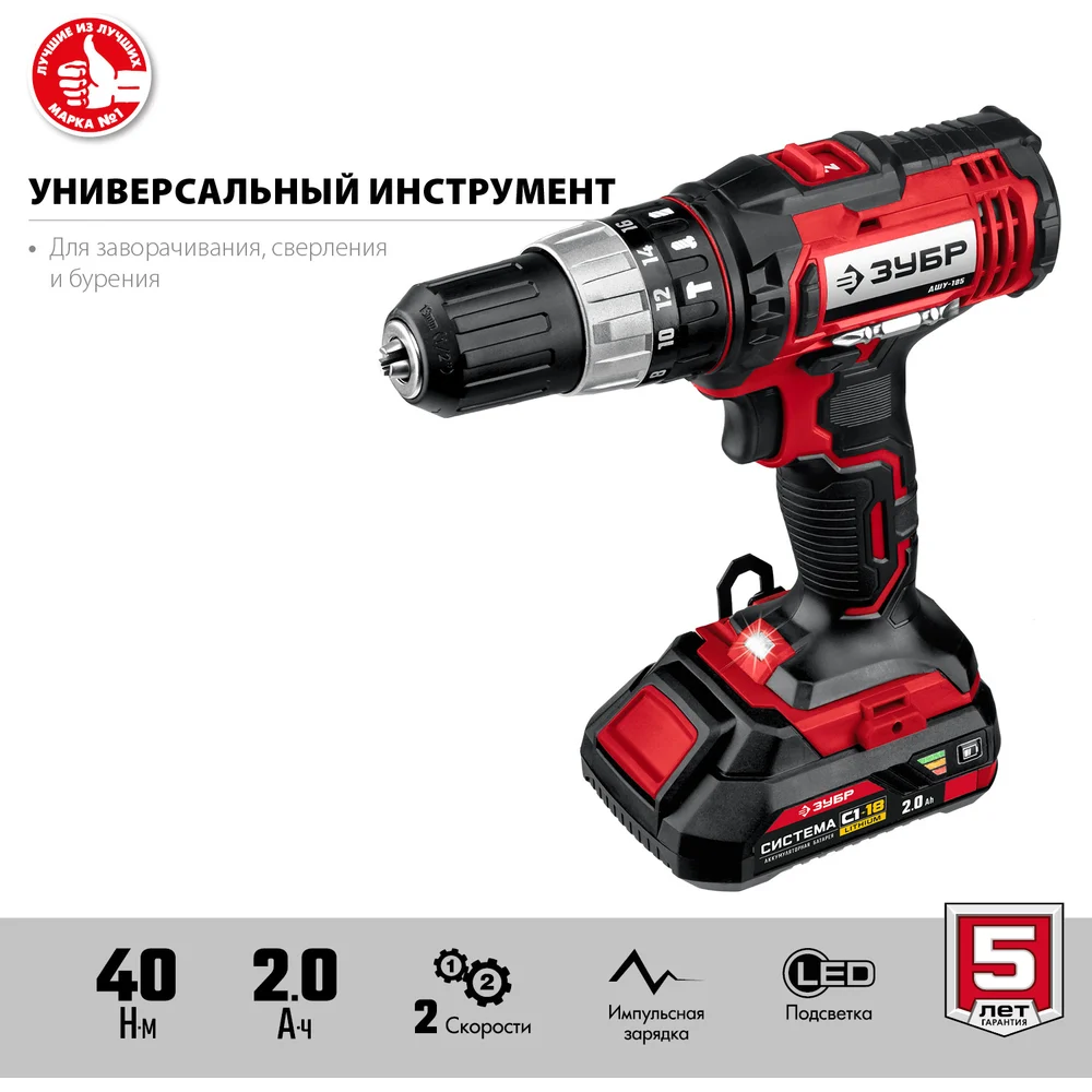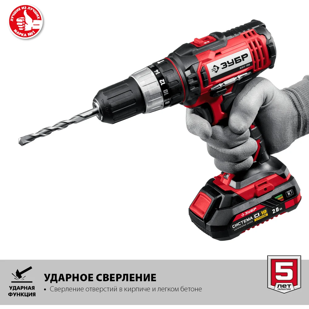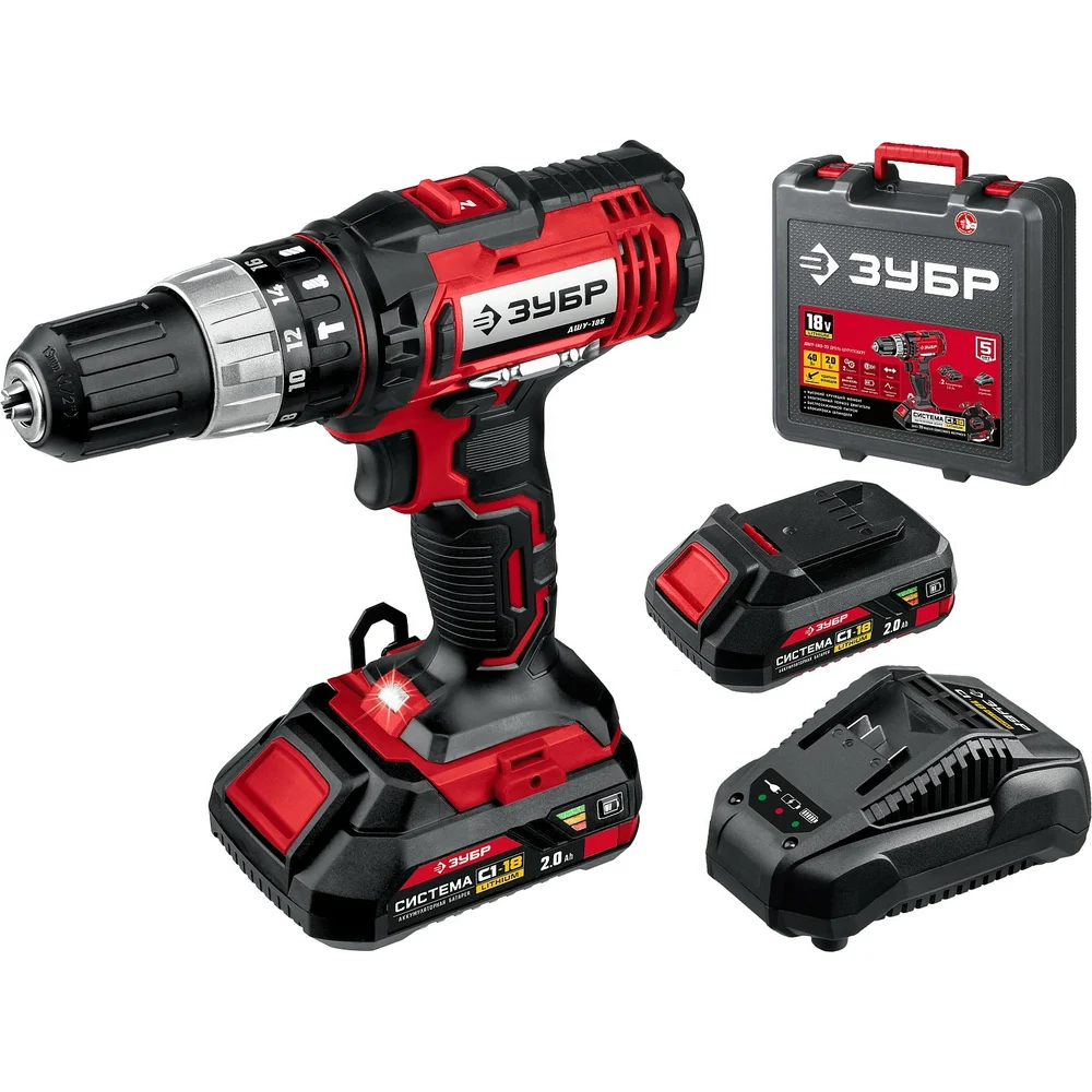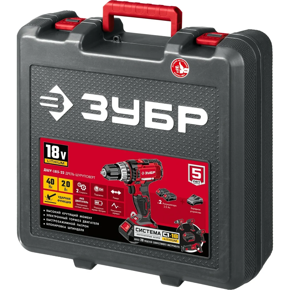 Купить Ударная дрель-шуруповерт ЗУБР 18В, 2 АКБ 2Ач, в кейсе ДШУ-185-22 по лучшей цене с доставкой - интернет магазин №1 в России