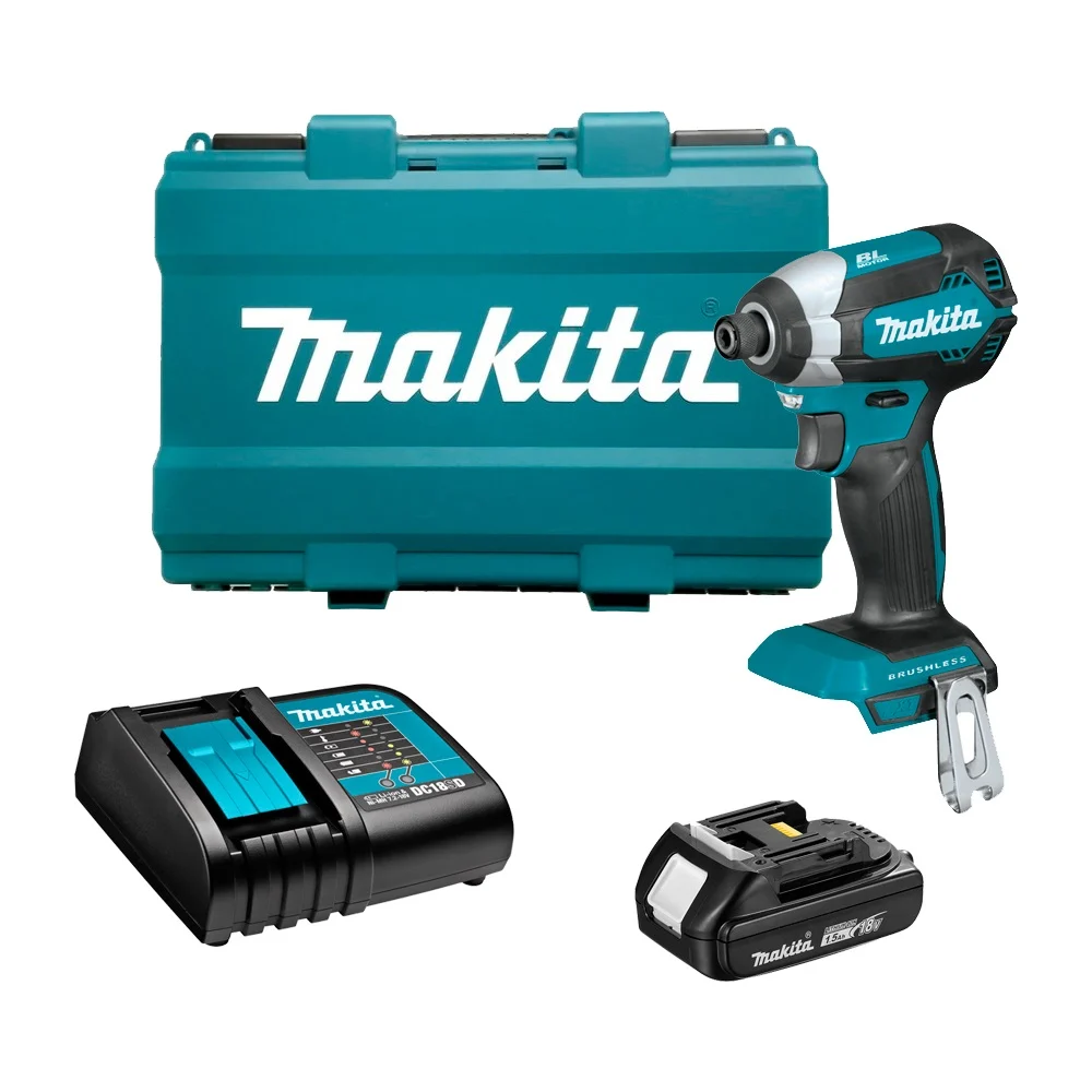 Комплектация Зарядное устройство Makita DC18SD 197002-6 (14,4-18В, Li-Ion); Аккумулятор Makita BL1815N 196235-0 (18В, 1.5Ач, Li-Ion); Кронштейн Makita 346317-0 (1 шт.); Пластиковый кейс Makita (1 шт.); Ударный аккумуляторный шуруповерт