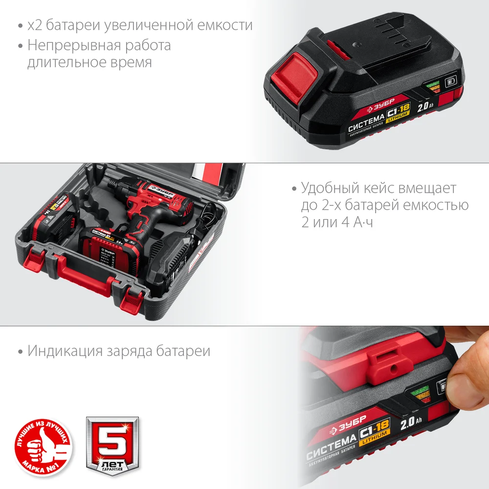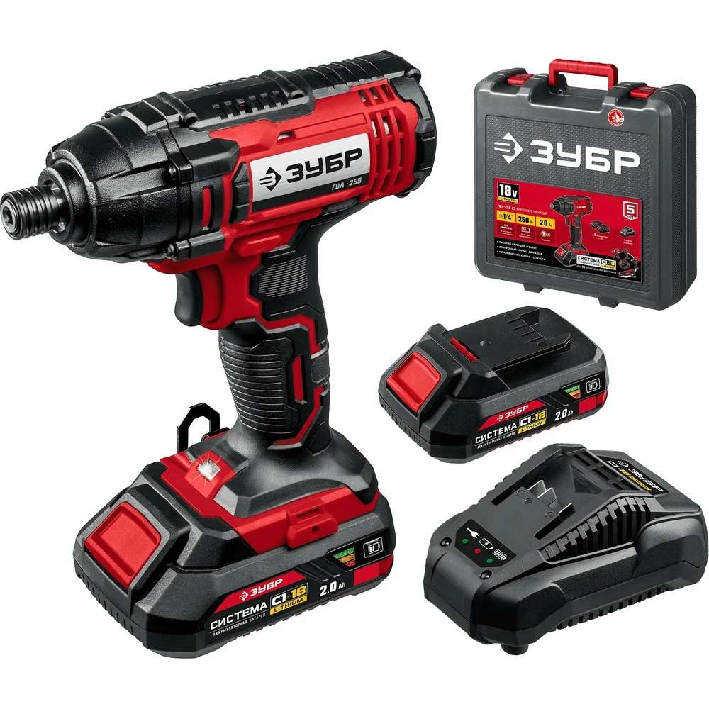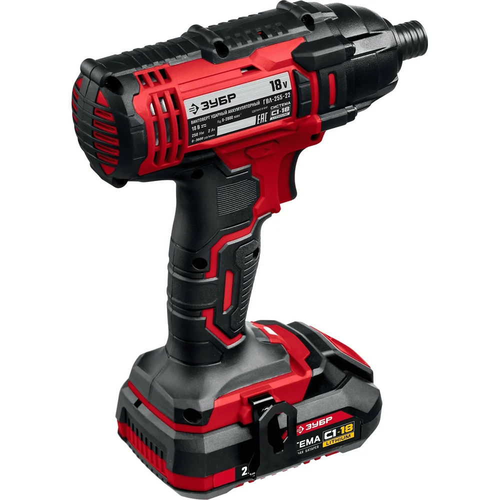 Ударный винтоверт ЗУБР 18В, 2 АКБ (2Ач), в кейсе ГВЛ-255-22