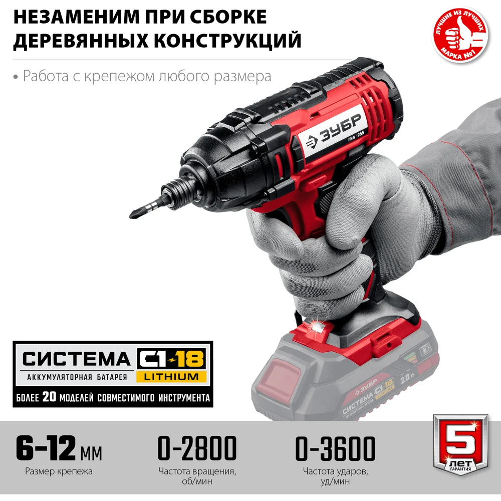 Ударный винтоверт ЗУБР 18В, без АКБ, в коробке ГВЛ-255