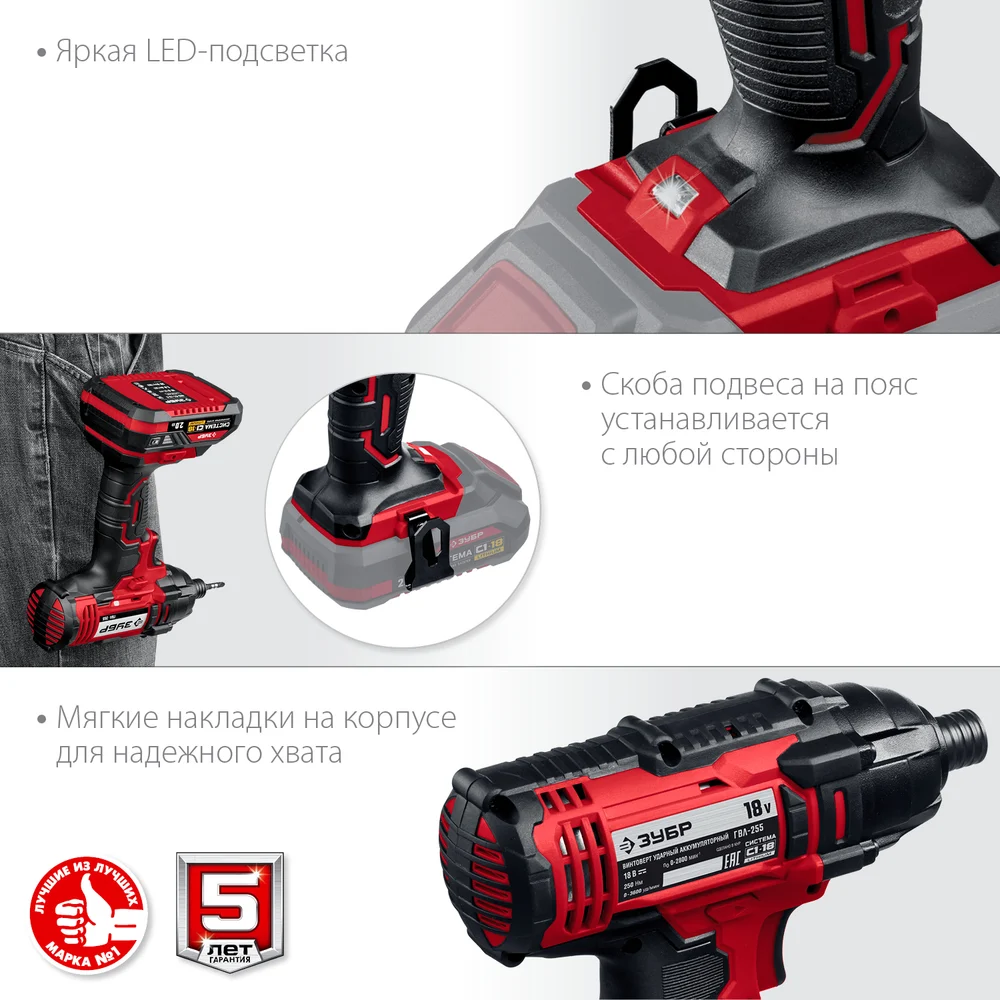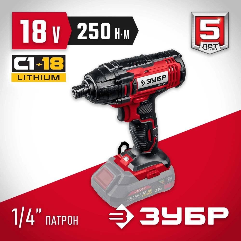 Купить Ударный винтоверт ЗУБР 18В, без АКБ, в коробке ГВЛ-255 по лучшей цене с доставкой - интернет магазин №1 в России