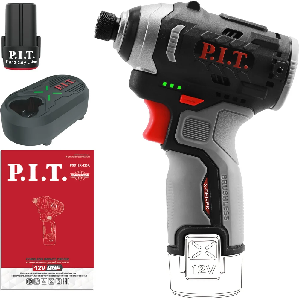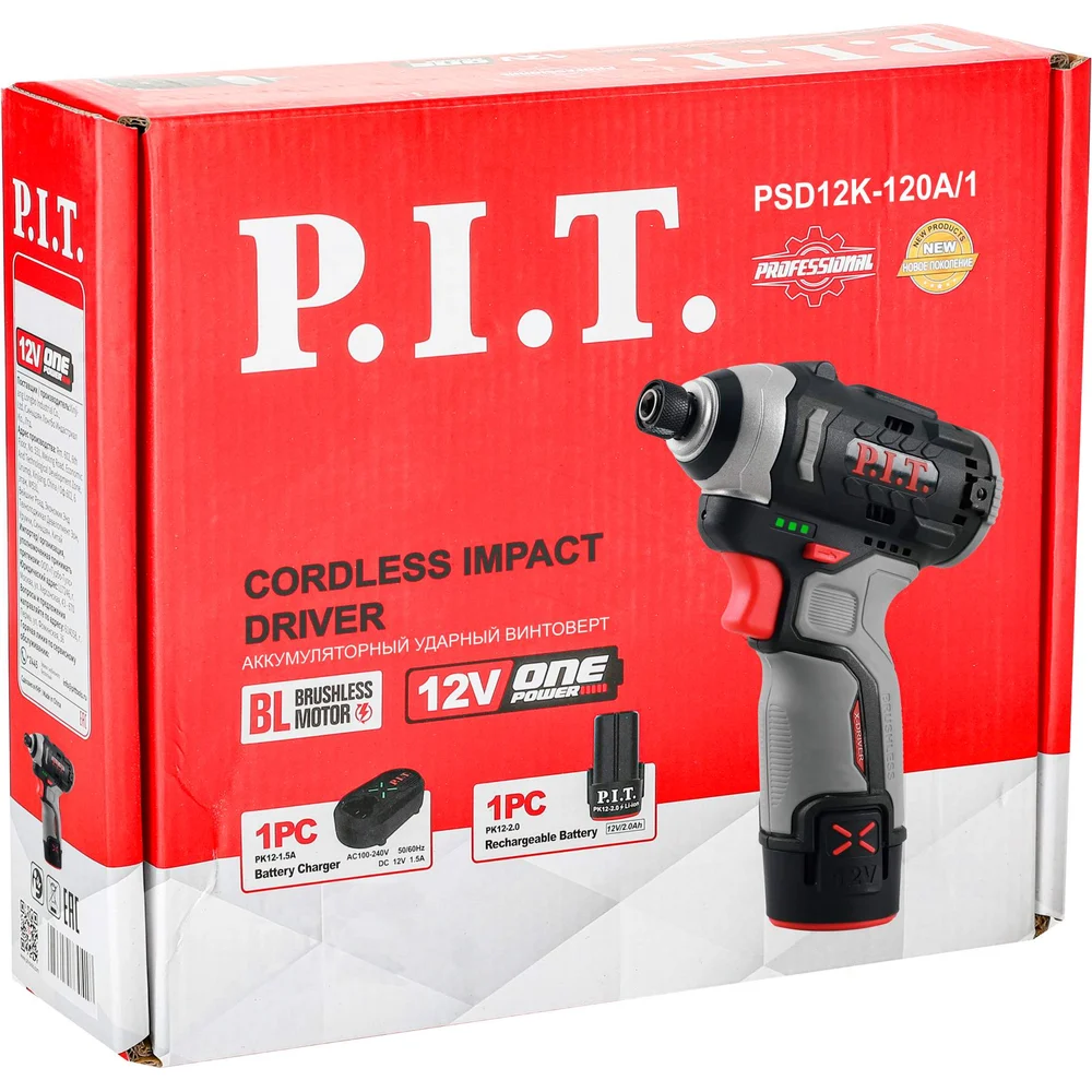 Купить Винтоверт аккумуляторный бесщёточный P.I.T. IMPACT 12В, 120Нм, 3 скорости, HEX 1/4", 1 акб 2Ач, ЗУ PSD12K-120A/1 по лучшей цене с доставкой - интернет магазин №1 в России