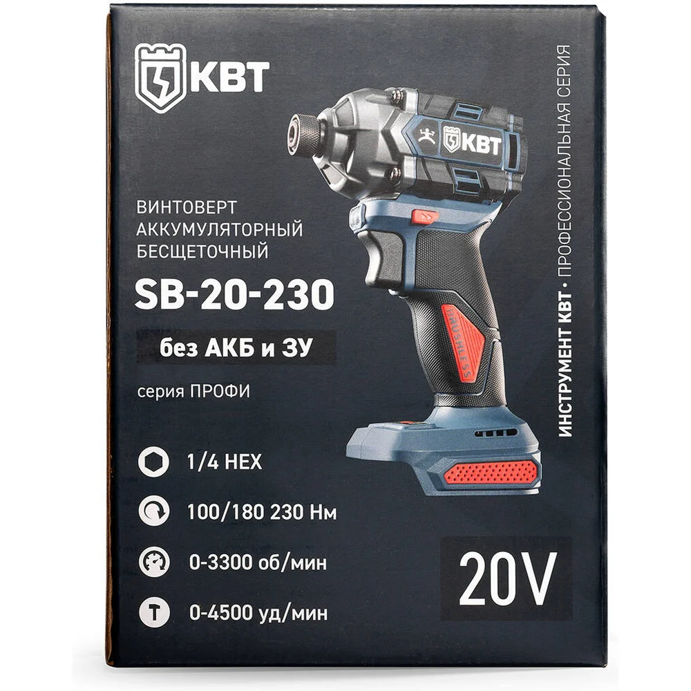 Купить Винтоверт КВТ SB-20-230 без АКБ и ЗУ ПРОФИ с быстрозажимным патроном 1/4 НЕХ 104535 по лучшей цене с доставкой - интернет магазин №1 в России