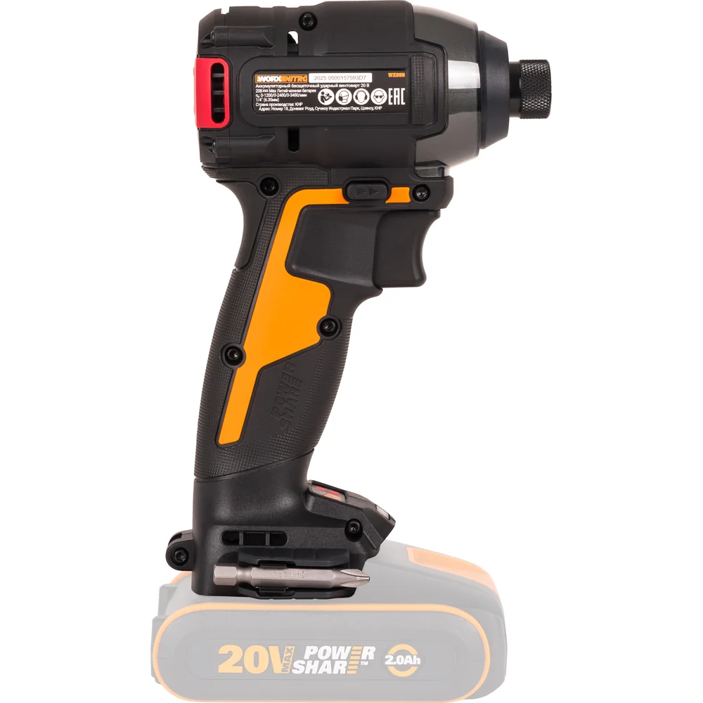 Винтоверт ударный WORX бесщеточный аккумуляторный, 20В, 200Нм, без АКБ и ЗУ, коробка WX265.9