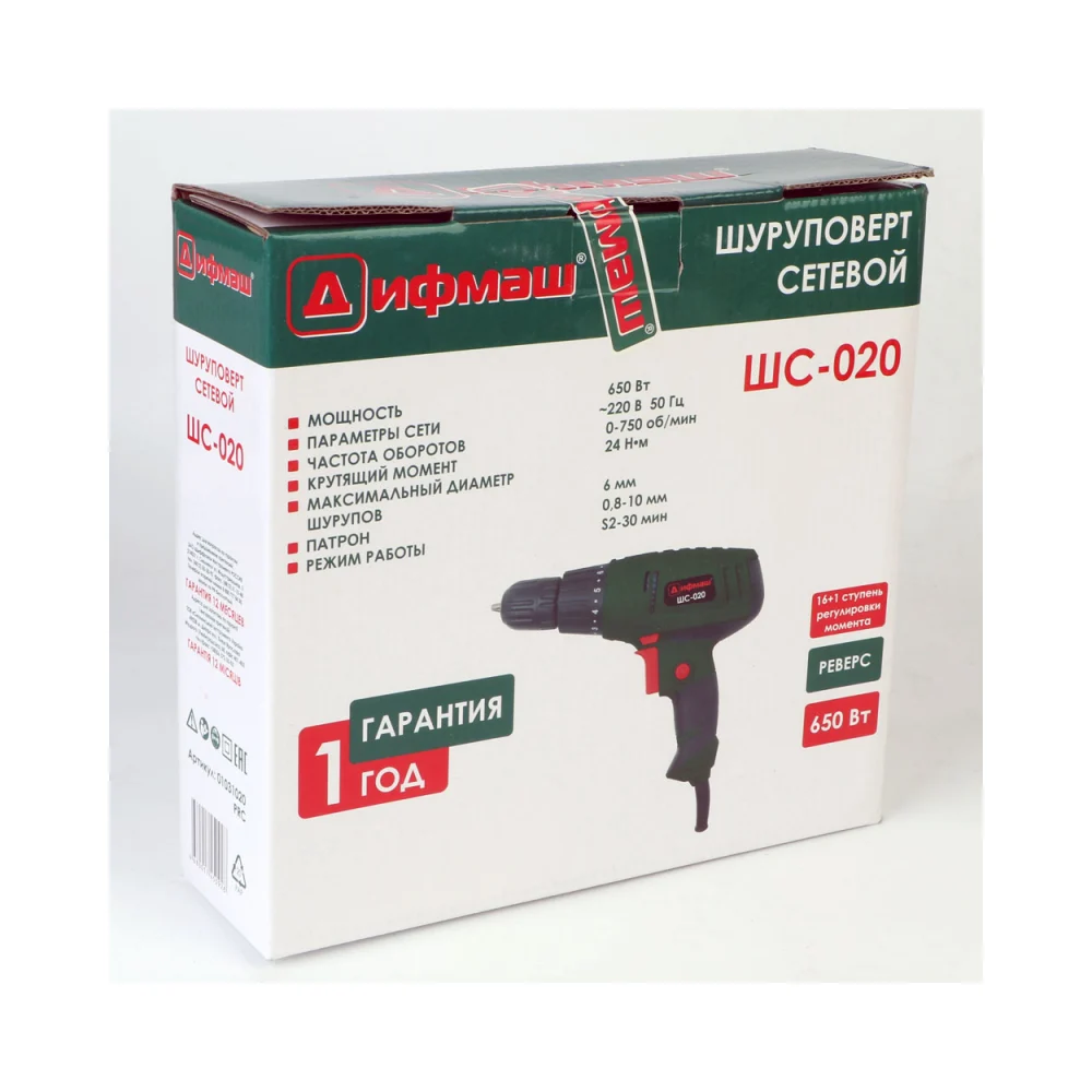 Купить Сетевой дрель-шуруповерт ДИФМАШ ШС-020 01031020 по лучшей цене с доставкой - интернет магазин №1 в России
