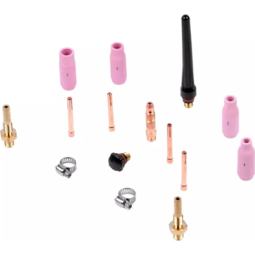 Комплектация Инверторный аппарат аргонодуговой сварки – 1 шт; Аргонодуговая горелка TIG 18 серии с водяным охлаждением – 1 шт; Клемма заземления – 1 шт; Заглушка длинная – 1 шт; Заглушка короткая – 1 шт; Сопло керамическое – 4 шт; Цанга – 4 шт; Держатель цанги – 1 шт; Соединитель быстросъемный – 2 шт; Хомут – 2 шт; Руководство по эксплуатации – 1 шт