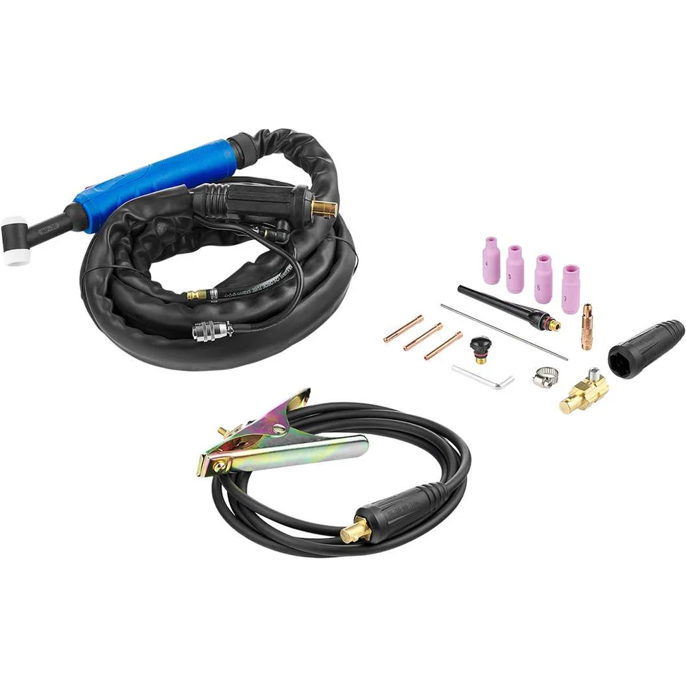 Комплектация Сварочный инверторный аппарат REAL TIG 200 P (W2J1)—1 шт; Сварочная горелка WP–26 в сборе,4 м—1 шт; Клемма заземления 200 А в сборе с кабелем ,3 м—1 шт; Комплект ЗИП—1 шт; Руководство по эксплуатации и паспорт—1 шт