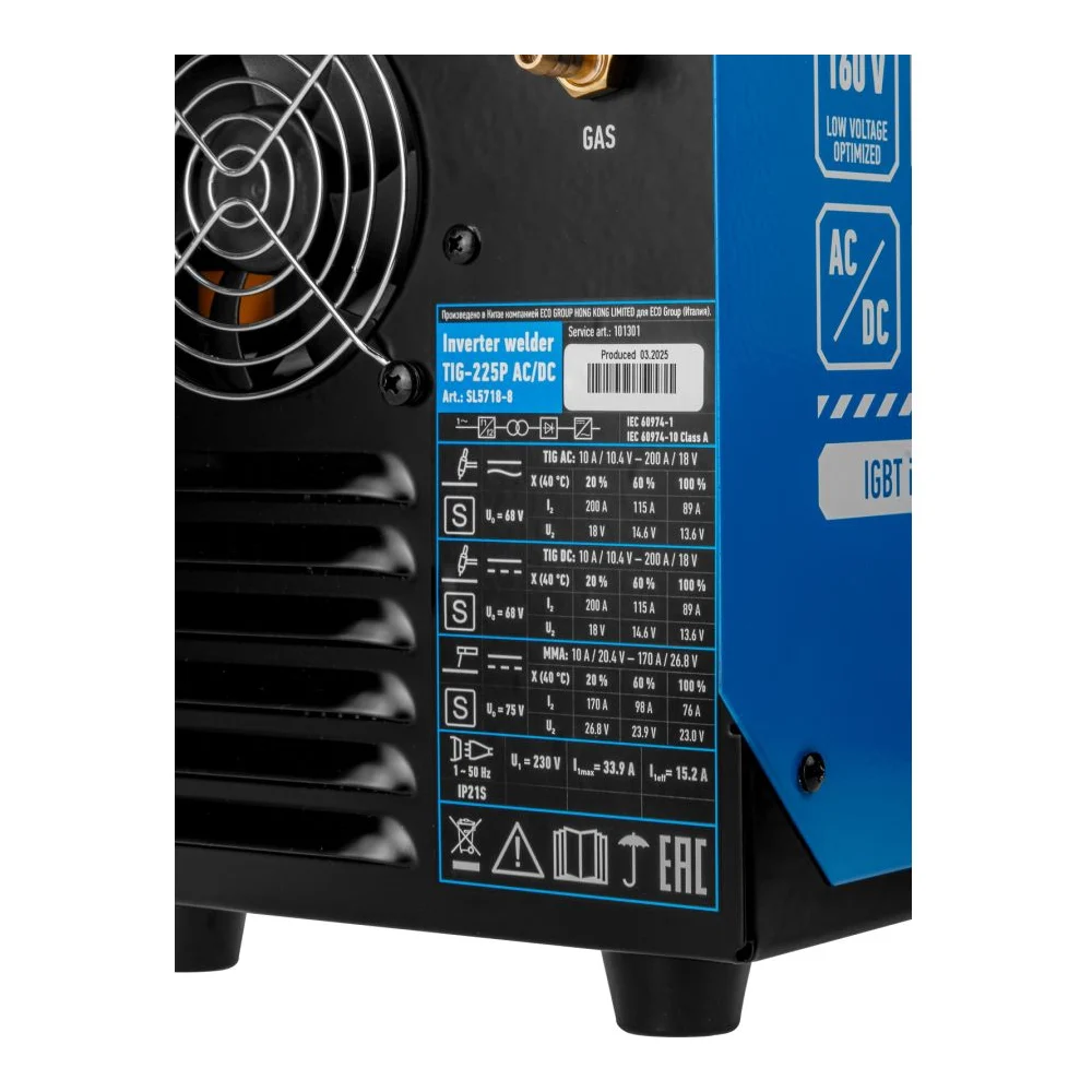 Инверторный аппарат аргонодуговой сварки SOLARIS TIG-225P AC/DC SL5718-8