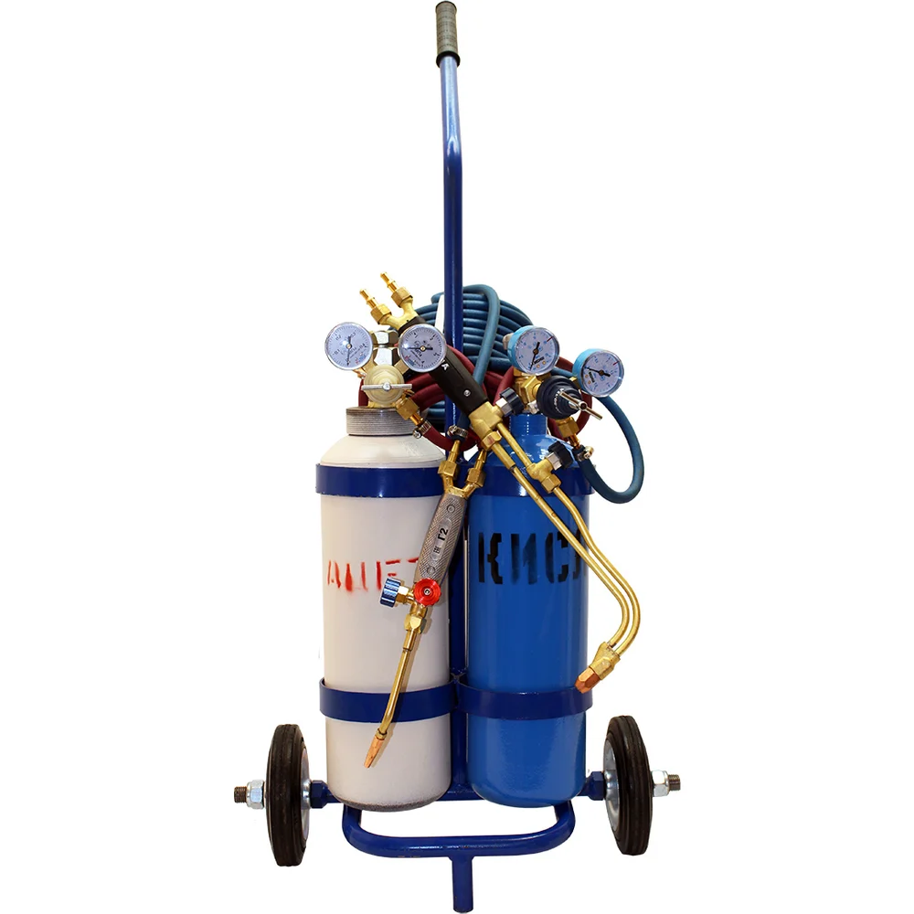 Комплектация Баллон ацетиленовый 5 л (новый) - 1 шт; Баллон кислородный 5 л (новый) - 1 шт; Редуктор ацетиленовый БАО-5-1,5 - 1 шт; Редуктор кислородный БКО-50-12,5 - 1 шт; Рукав Ф6,3 мм красный - 10 м; Рукав Ф6,3 мм синий- 10 м; Резак ацетиленовый Р1А - 1 шт; Горелка ацетиленовая Г2-23 / Г2 - 1 шт; Хомут 3/4 - 4 шт; Тележка - 1 шт