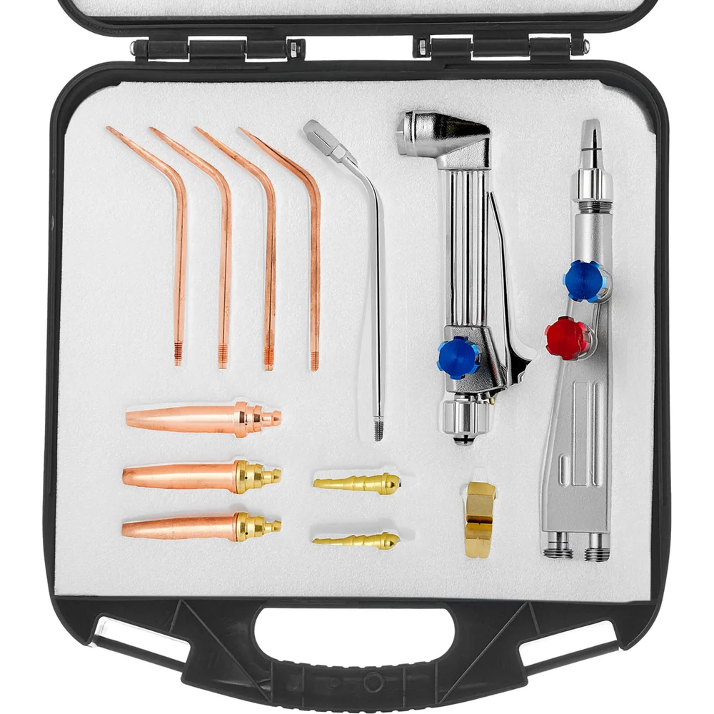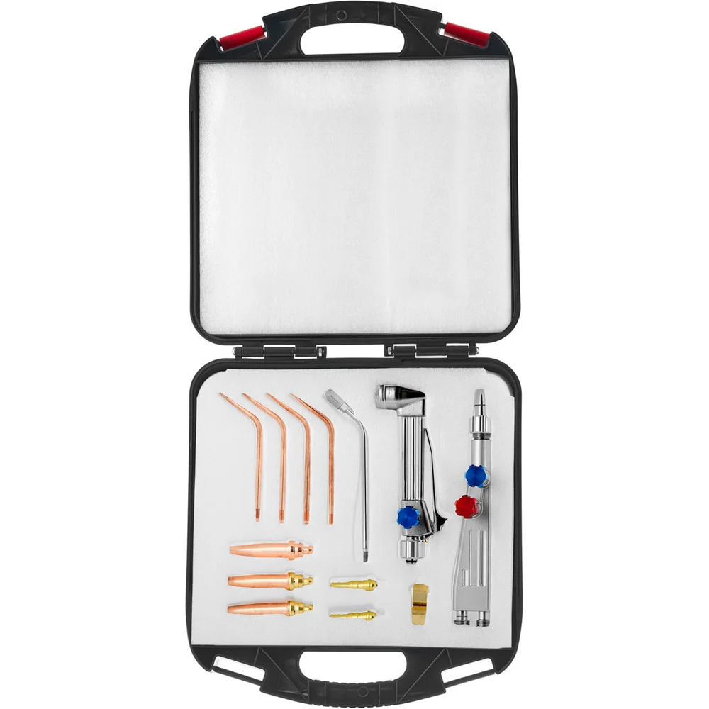 Комплектация Ствол резака/горелки – 1 шт; Наконечник для резки под мундштук внутрисоплового смешения газов – 1 шт; Миксер (смесительное устройство для сварочных наконечников) – 1 шт; Мундштук для резки ацетиленом №2А – 1 шт; Мундштук для резки пропаном №2П – 1 шт; Мундштук для резки пропаном №3П – 1 шт; Наконечник для сварки ацетиленом №2А – 1 шт; Наконечник для сварки ацетиленом №3А – 1 шт; Наконечник для сварки пропаном №2П – 1 шт; Наконечник для сварки пропаном №3П – 1 шт; Наконечник для подогрева пропаном №2П – 1 шт; Ниппель универсальный ⌀6/9 мм – 2 шт; Гайка накидная М16х1,5 – 1 шт; Гайка накидная М16х1,5LH – 1 шт; Кейс для хранения набора – 1 шт; Руководство по эксплуатации – 1 шт