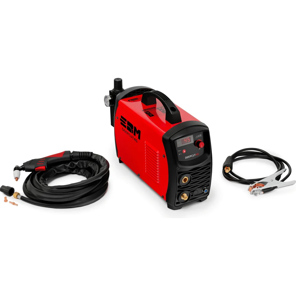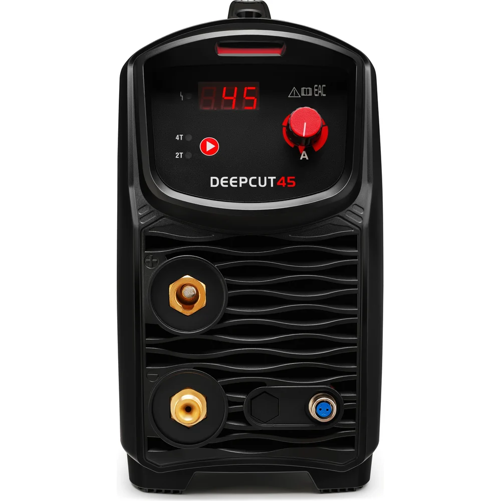 Комплектация - Аппарат воздушно-плазменной резки DEEPCUT 45 – 1 шт.; - Плазмотрон PT-31, 5м. – 1 шт.; - Массовый зажим 300 А с кабелем 16 мм2, 2,5 м. – 1 шт.; - Хомут – 2 шт.; - Воздушный фильтр – регулятор – 1 шт.; - Инструкция по эксплуатации – 1 шт.