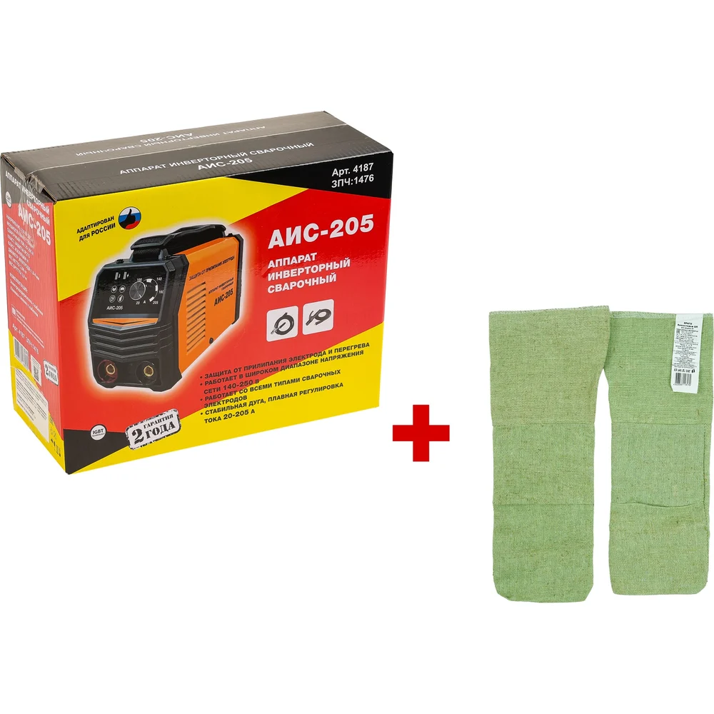 Купить Инвертор сварочный СПЕЦ АИС-205, 230 В, А20-205, электр. 1,6-4 мм (акс.в компл.) + краги 4187/И-8079-И по лучшей цене с доставкой - интернет магазин №1 в России