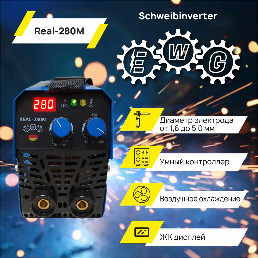 Купить Инвертор ТД Техник E.W.G. REAL- 280М 60%ПН 280A, форсаж дуги, цифровое табло, электрододержатель, клемма масса, кабель 48 по лучшей цене с доставкой - интернет магазин №1 в России