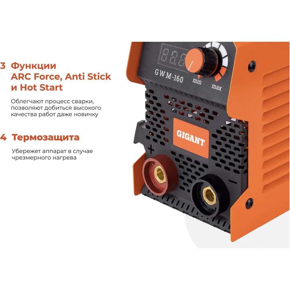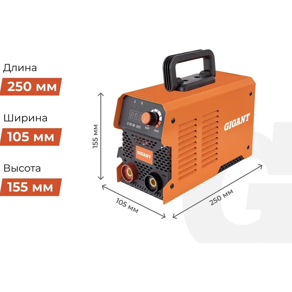 Купить Инверторный сварочный аппарат (160 А; кабель 2.5+1.5 м; ПВ 70%) Gigant GWM-160 по лучшей цене с доставкой - интернет магазин №1 в России