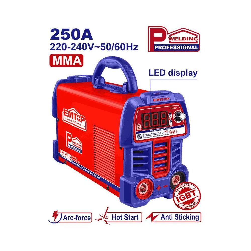 Купить Инверторный сварочный аппарат EMTOP MMA выходной ток: 15-250 А, рабочий цикл: 250 А при 60 С%, светодиодный дисплей, напряжение холостого хода: 80 В EWDEM2561 по лучшей цене с доставкой - интернет магазин №1 в России
