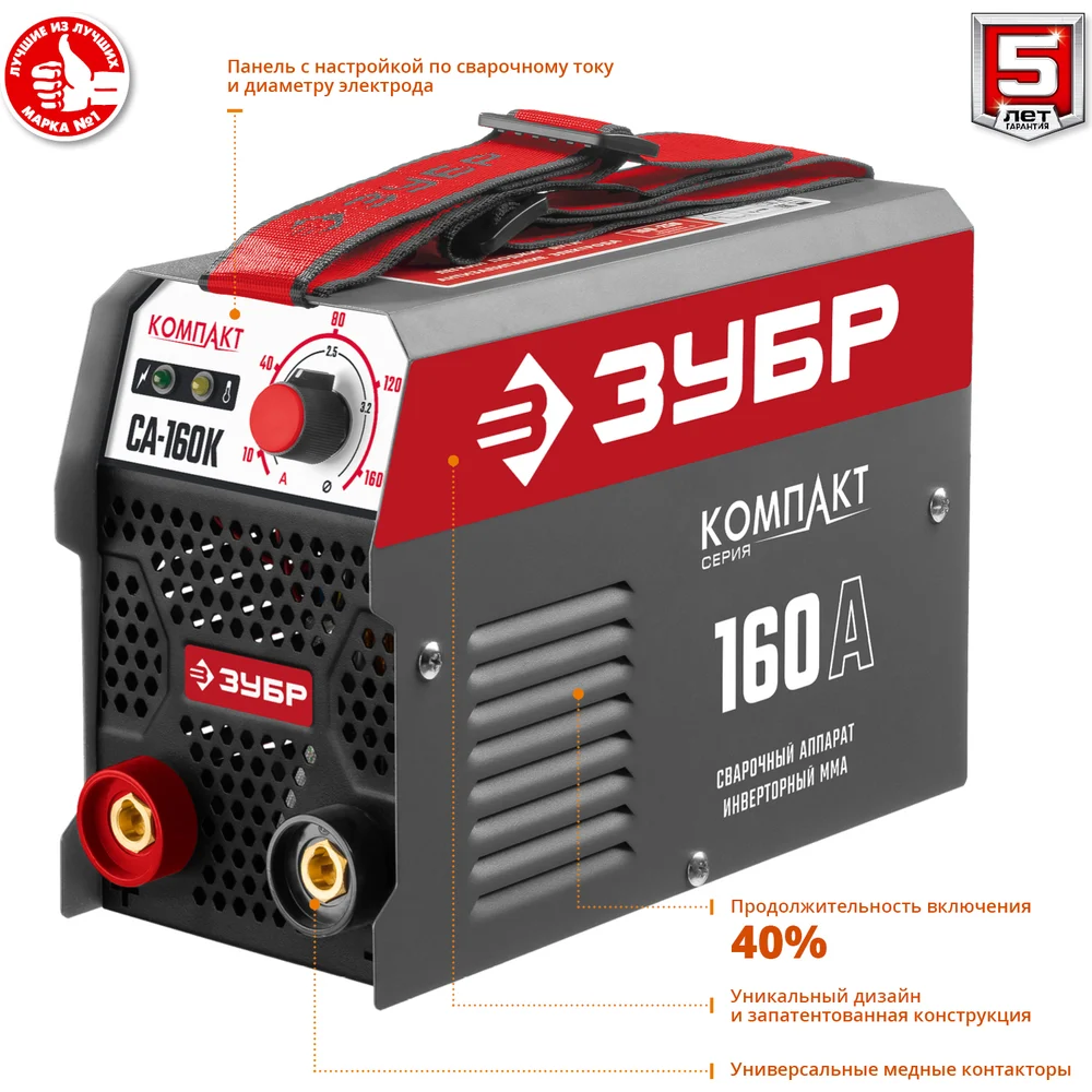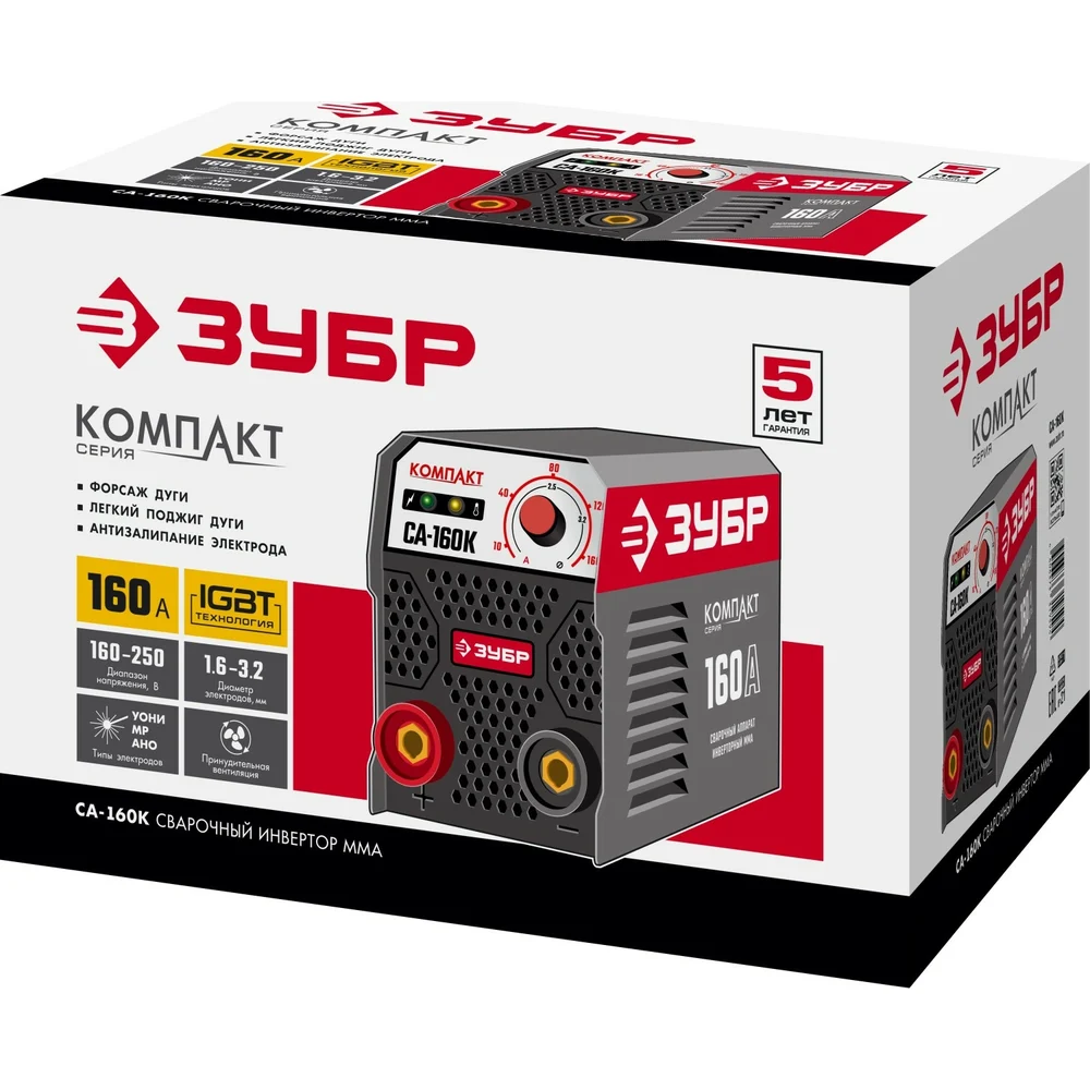 Купить Инверторный сварочный аппарат Зубр 160 А, СА-160К по лучшей цене с доставкой - интернет магазин №1 в России