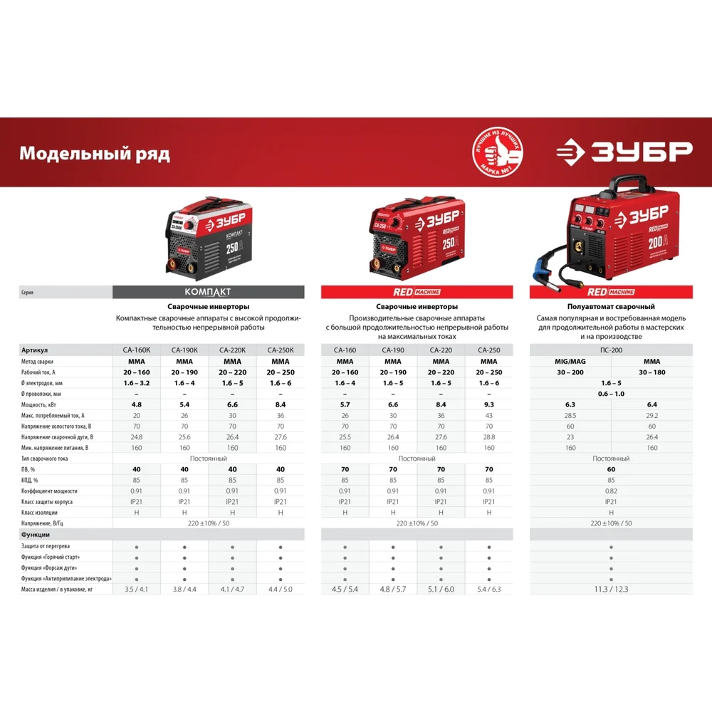 Купить Инверторный сварочный аппарат ЗУБР СА-250К по лучшей цене с доставкой - интернет магазин №1 в России