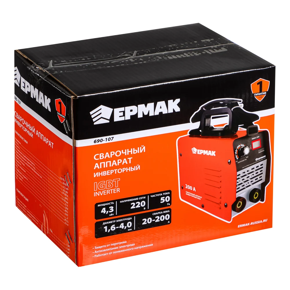Купить Сварочный аппарат, инверторный ЕРМАК 200А 690-107 по лучшей цене с доставкой - интернет магазин №1 в России
