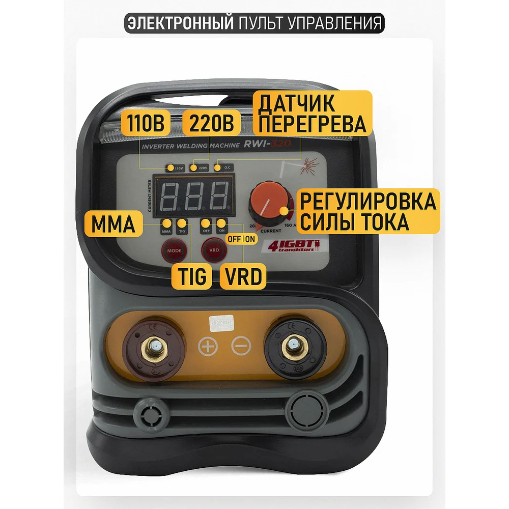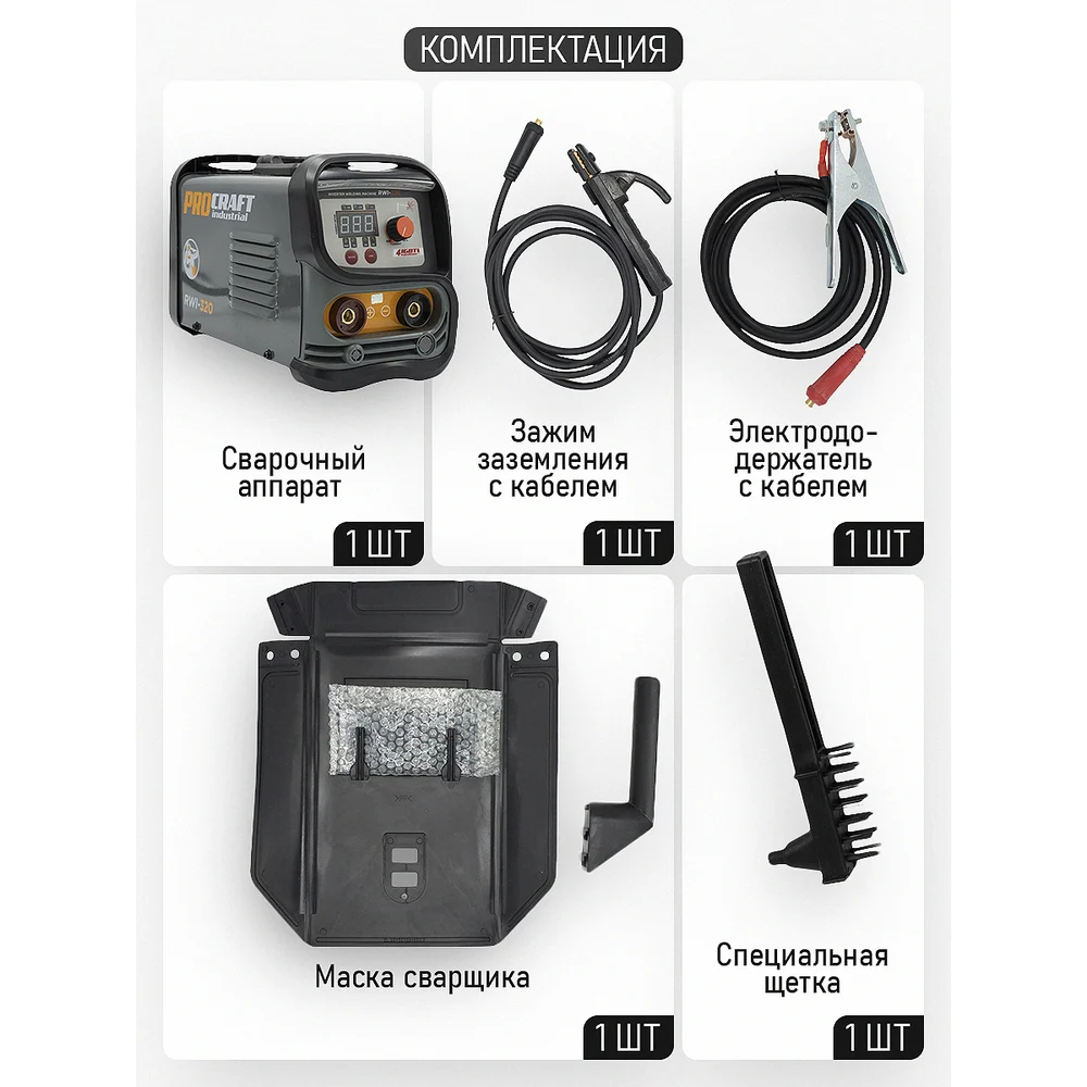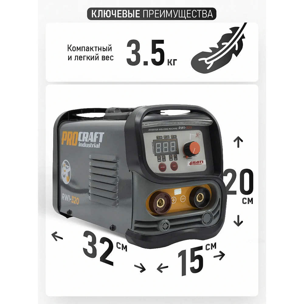 Купить Сварочный аппарат инверторный PROCRAFT 5,3кВт, 20-160А, ММА RWI-320 по лучшей цене с доставкой - интернет магазин №1 в России