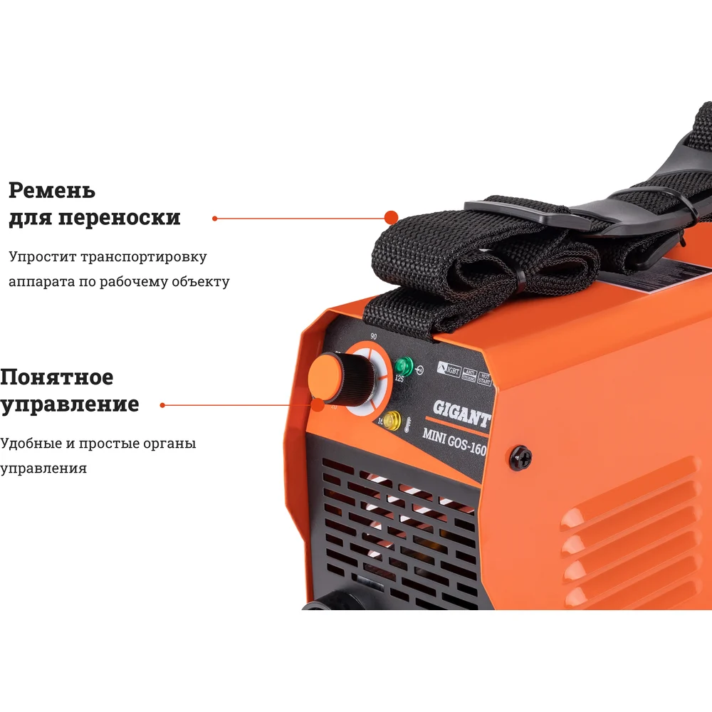 Купить Сварочный инвертор (160 А; кабель 1.5+1.35 м; ПВ 60%) Gigant MMA MINI GOS-160 по лучшей цене с доставкой - интернет магазин №1 в России