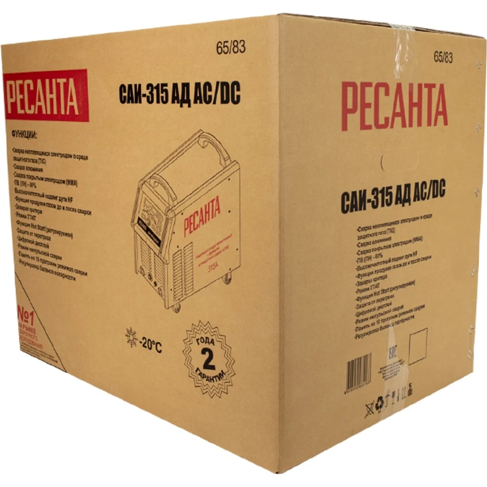 Купить Сварочный инверторный аппарат Ресанта САИ-315АД АС/DC 65/83 по лучшей цене с доставкой - интернет магазин №1 в России