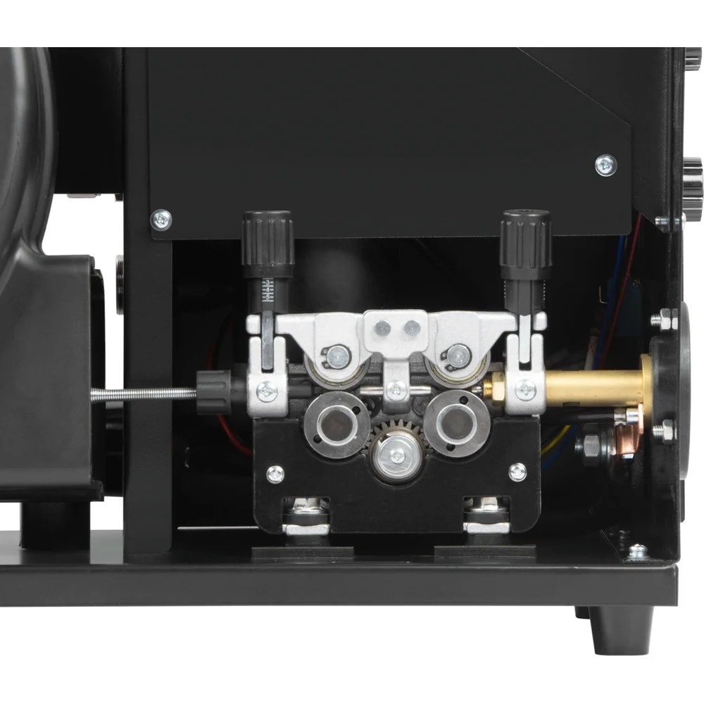 Комплектация Инверторный аппарат полуавтоматической сварки; Выносной подающий механизм; Тележка-платформа; Кабель-пакет; Полуавтоматическая горелка MIG 36 серии с воздушным охлаждением; Клемма заземления; Ролик подающий 30х10х12 V 1,2-1,6 – 2 шт; Ролик подающий 30х10х12 V 0,8-1,0 – 2 шт; Ключ; Цепь для крепления газового баллона – 2 шт; Ручка для переноски аппарата; Руководство по эксплуатации