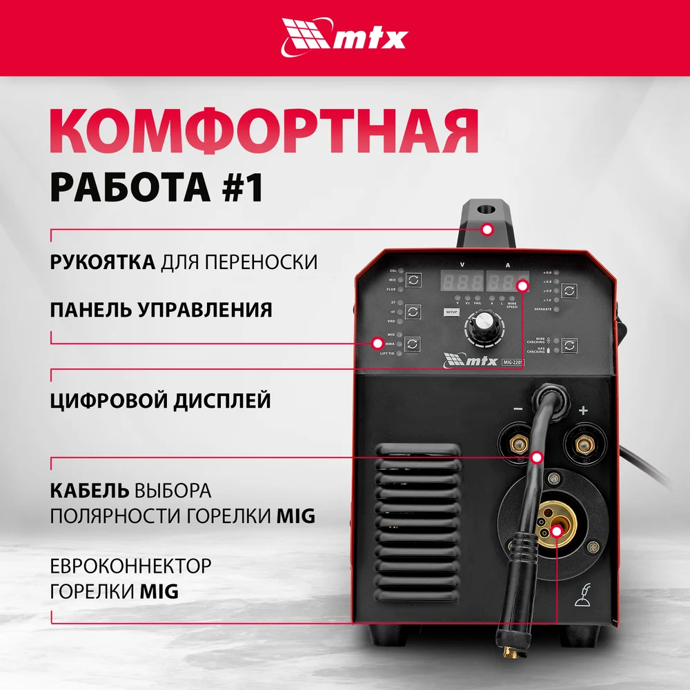 Купить Инверторный аппарат полуавтоматической сварки MTX mig-220s, 220a, катушка 5 кг 94304 по лучшей цене с доставкой - интернет магазин №1 в России