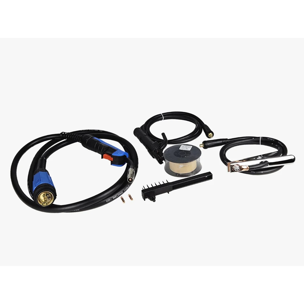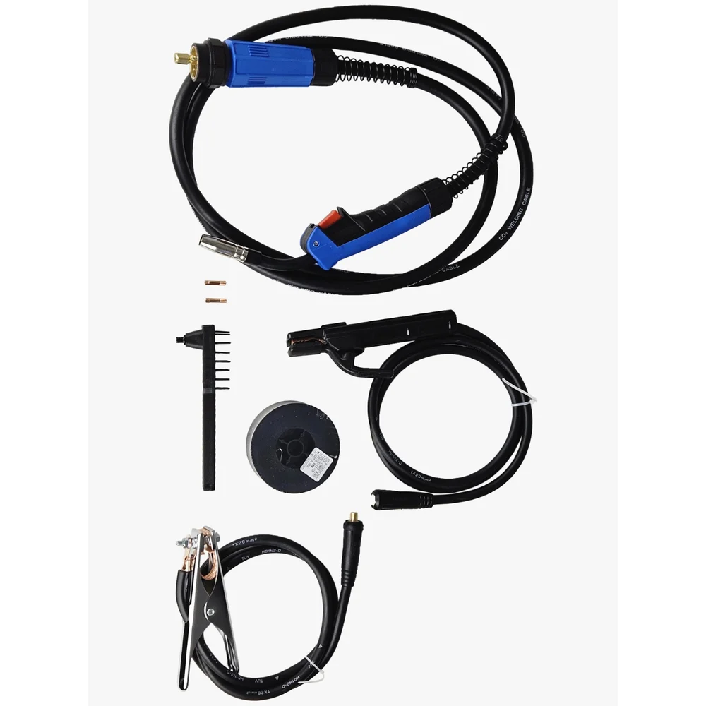 Комплектация Аппарат; Инструкция; Кабель с клемом заземления 1,5м; Кабель с электрододержателем 1,5м; Кор.щётка; Проволока 0.8мм 0,5кг (для работы без газа); Ролик подачи проволоки 0,8м/1мм (работы с газом); Рукав/горелка 3м съёмная