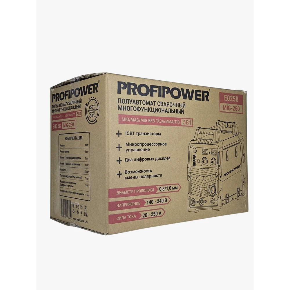 Купить Полуавтомат сварочный многофункциональный Profipower MIG-250 5 в 1 (MIG/MAG//MIG NO GAS/ММА/TIG) E0258 по лучшей цене с доставкой - интернет магазин №1 в России
