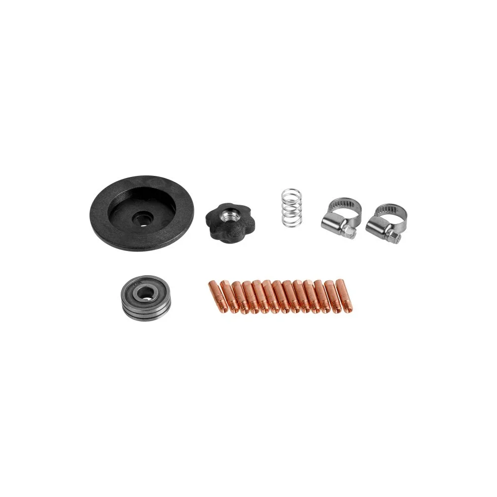 Комплектация Инверторный полуавтомат; Горелка сварочная 3 метра; Электрододержатель с кабелем 3 метра; Клемма заземления с кабелем 3 метра; Газовый шланг 2 метра; Хомут стяжка 2 шт; Подающий ролик для проволоки V-типа 0,6-0,8 мм (установлен в механизм подачи проволоки); Подающий ролик для проволоки K-типа 0,8-1,0 мм (дополнительный для порошковой FLUX проволоки); Комплект запасных контактных наконечников (0,6 мм - 3 шт. 0,8 мм - 5 шт. 1,0 мм - 5 шт); Ключ для обслуживания горелки