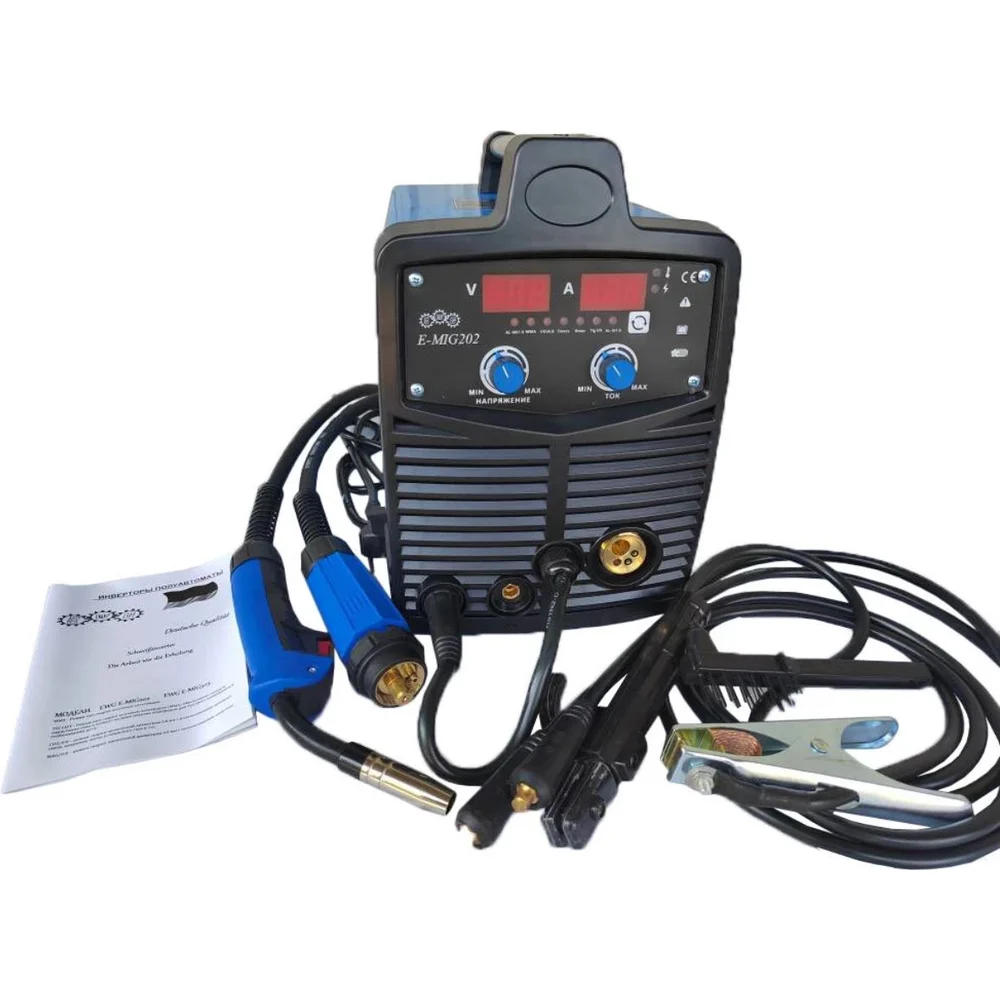 Комплектация Полуавтомат; Горелка МВ 15 3 м,; Электрододержатель с кабелем,; Зажим-масса с кабелем,; Кабельные вставки,; защитный щиток с ручкой