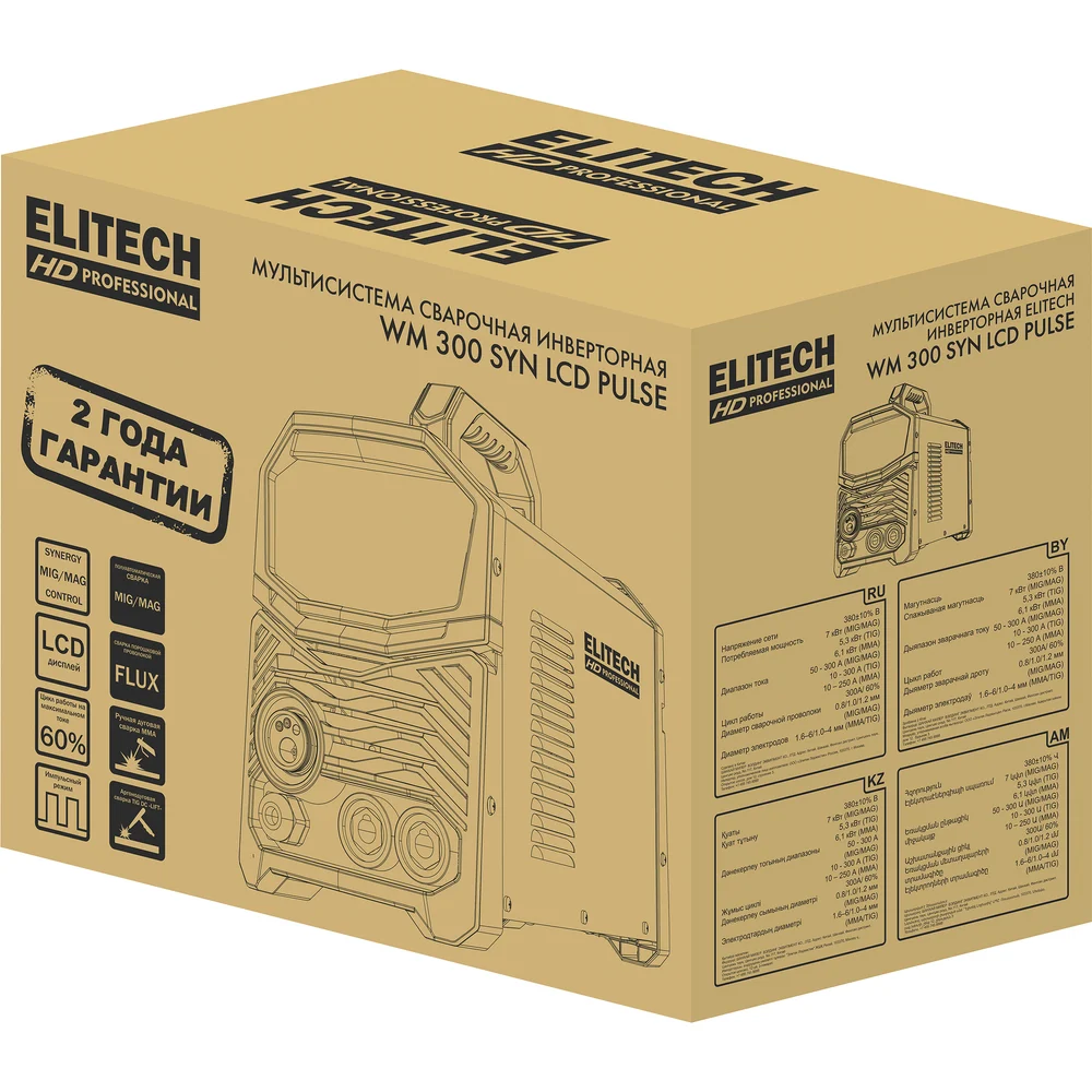 Купить Сварочная мультисистема Elitech HD WM 300 SYN LCD PULSE (ММА+MIG/MAG+TIG, импульс) 204474 по лучшей цене с доставкой - интернет магазин №1 в России