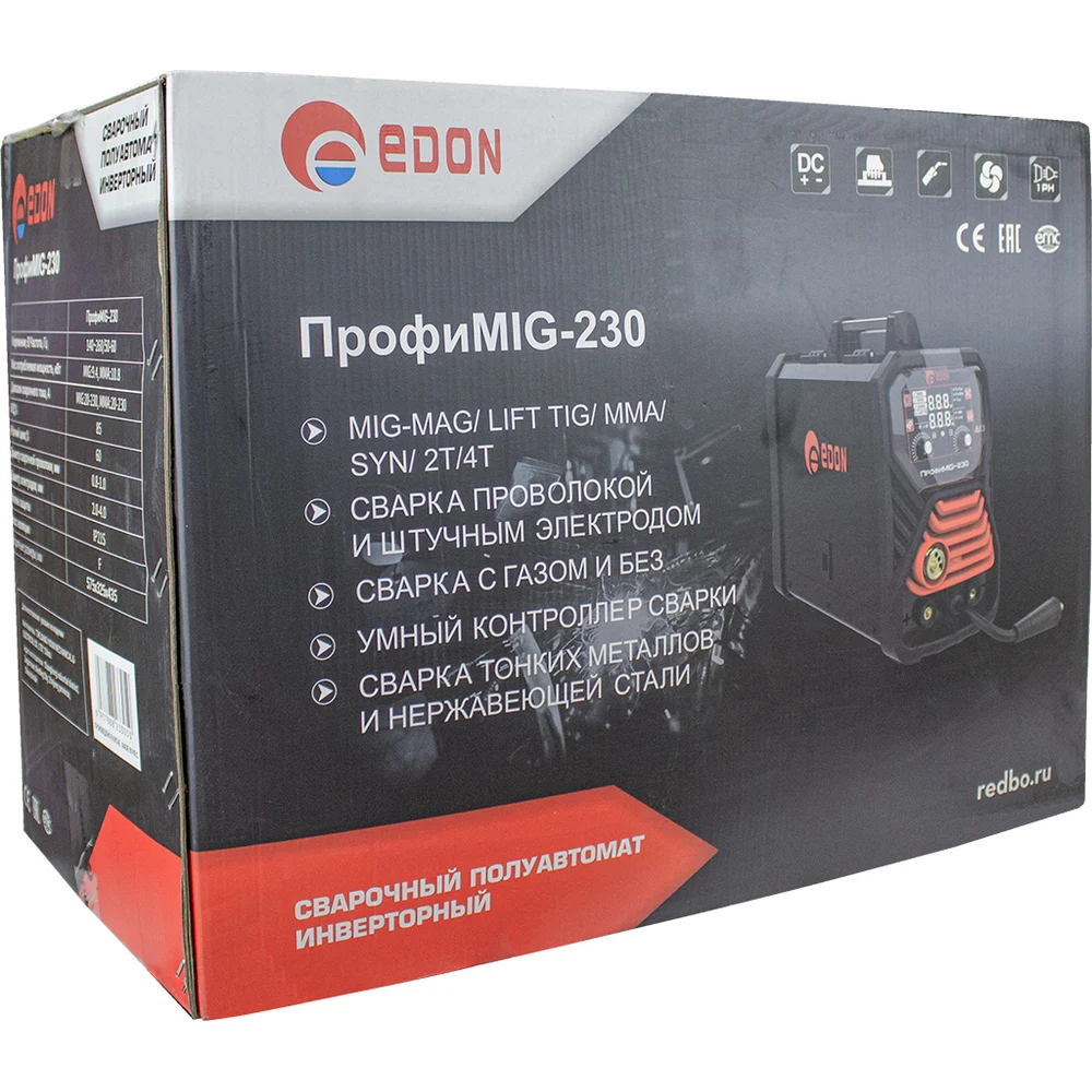 Купить Сварочный аппарат Edon ПрофиMIG-230 (MIG (Co2, MIX), MIG (FCAW) 50-230A 0.8-1 мм., MMA 20-230A., 2-4 мм. 2T/4T, рег-ка 24953 по лучшей цене с доставкой - интернет магазин №1 в России