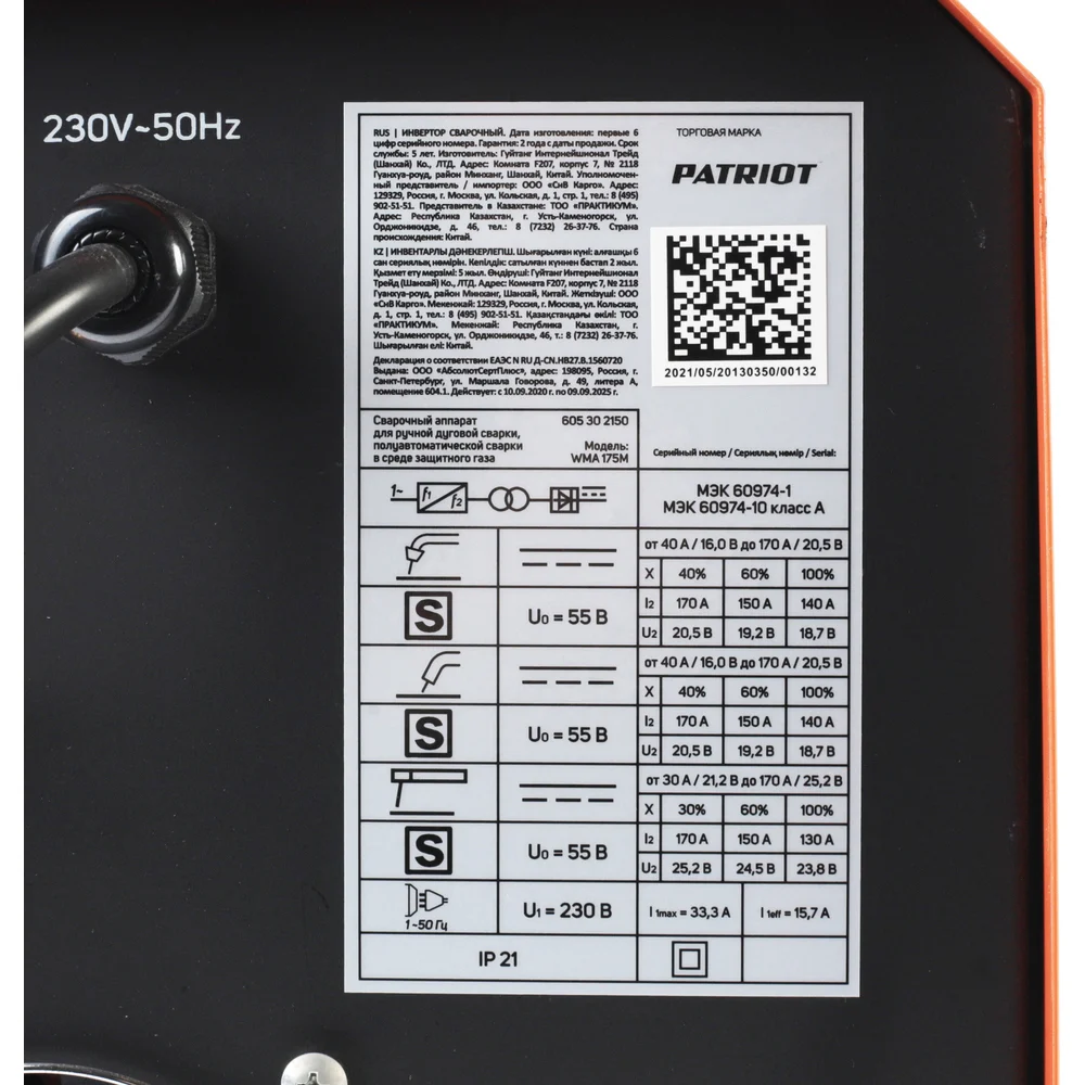 Купить Сварочный инверторный полуавтомат PATRIOT WMA 175M MIG/MAG/MMA, полуавтоматическая сварка в среде 605302150 по лучшей цене с доставкой - интернет магазин №1 в России