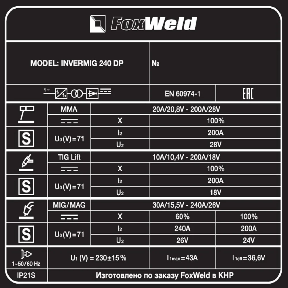 Купить Сварочный полуавтомат invermig 240 dp Foxweld 8916 по лучшей цене с доставкой - интернет магазин №1 в России