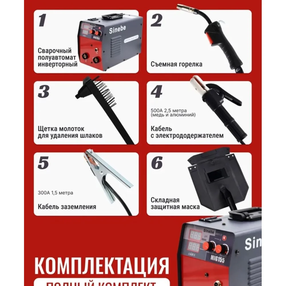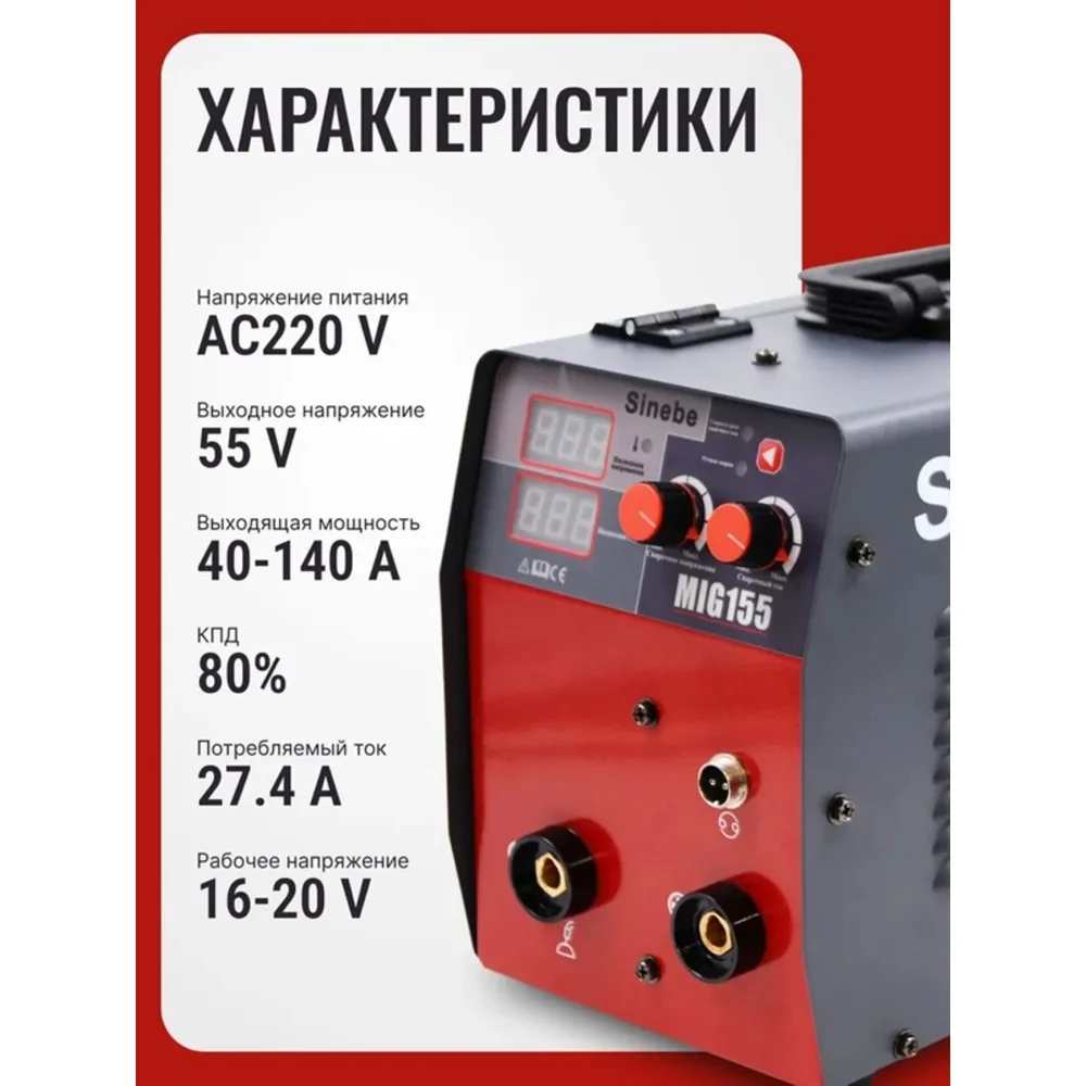 Купить Сварочный полуавтомат-инвертор Sinebe MIG-155 (без газа) MIG 155 по лучшей цене с доставкой - интернет магазин №1 в России