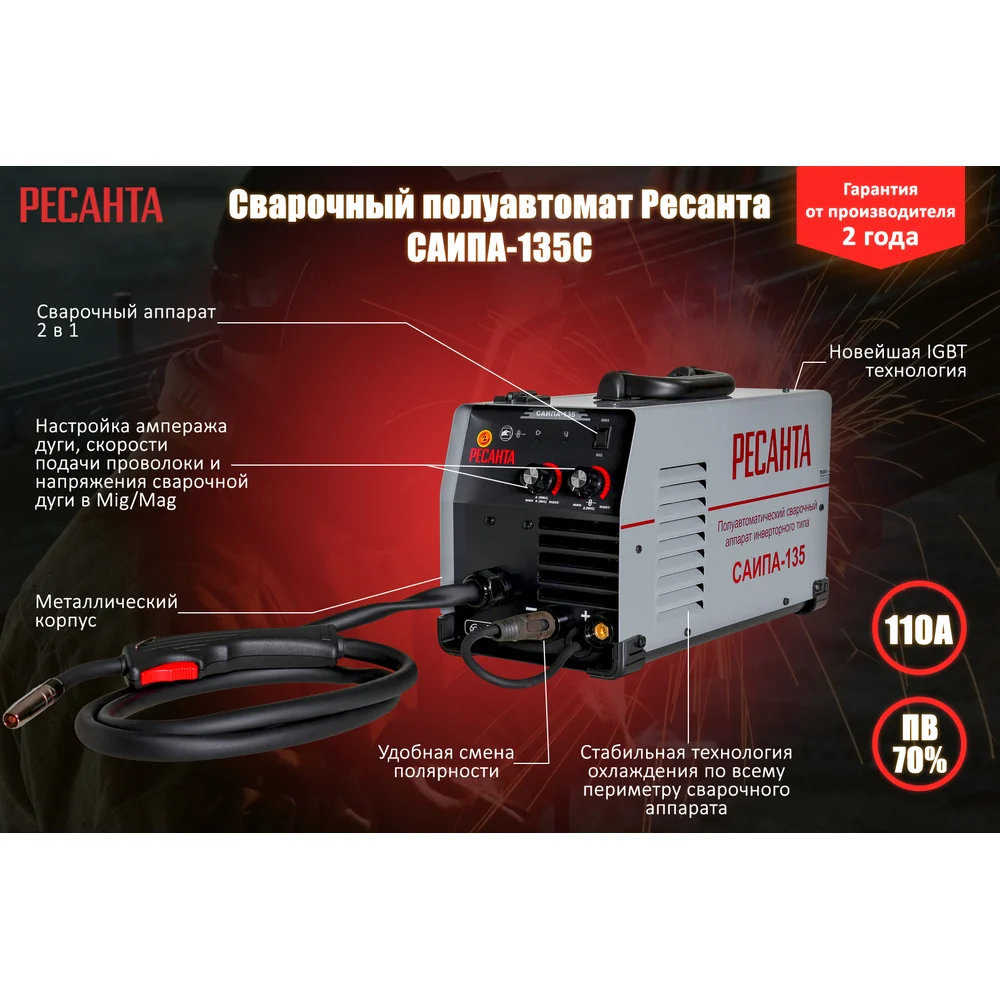 Купить Сварочный полуавтомат Ресанта САИПА-135С MIG 5в1 65/7 по лучшей цене с доставкой - интернет магазин №1 в России