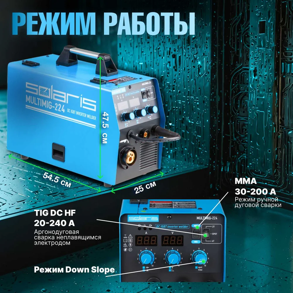 Купить Сварочный полуавтомат SOLARIS MULTIMIG-224 по лучшей цене с доставкой - интернет магазин №1 в России
