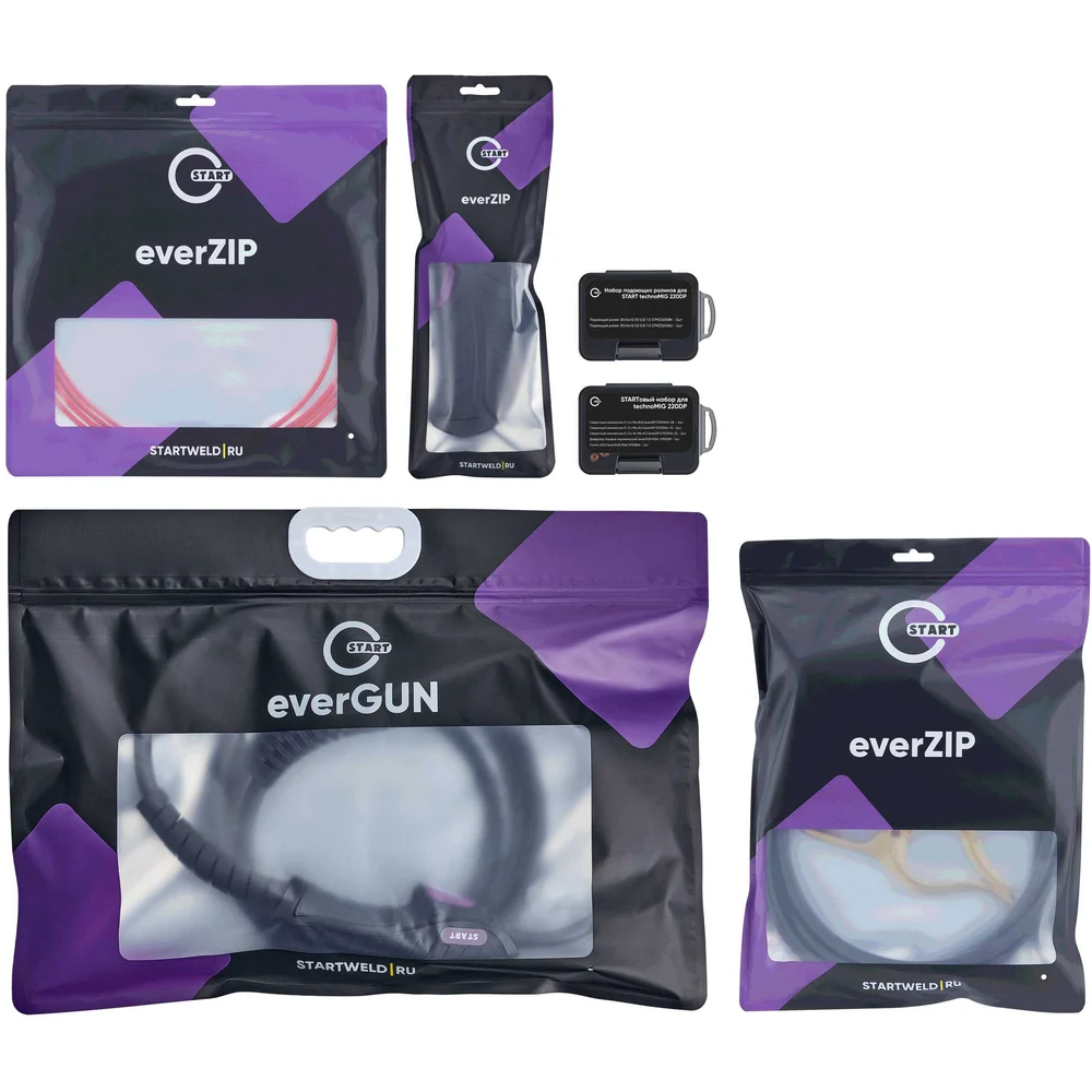 Комплектация Источник; Сварочная горелка STARTeverGUN24 (3 м); Съемная рукоятка T-GRIP (everGUN M); Кабельмедный16 мм слатуннойклеммой заземления 300А; Тефлоновый направляющий канал EverZip (1,0–1,2 мм); Инструкция, гарантийный талон; Газовый рукав; STARTовый набор для technoMIG 220 DP:; Сварочный наконечник E-Cu M6 d 0.8 – 2 шт; Сварочный наконечник E-Cu M6 d 1.0 – 2 шт; Сварочный наконечник E-Cu-Al M6 d.1.2 – 2 шт; Диффузор газовый керамический (everGUN M24) – 1 шт; Сопло d12.5 (everGUN M24) – 1 шт; Подающий ролик 30х14х12 (K) 0.8/1.0; Подающий ролик 30х14х12(U) 0.8/1.0