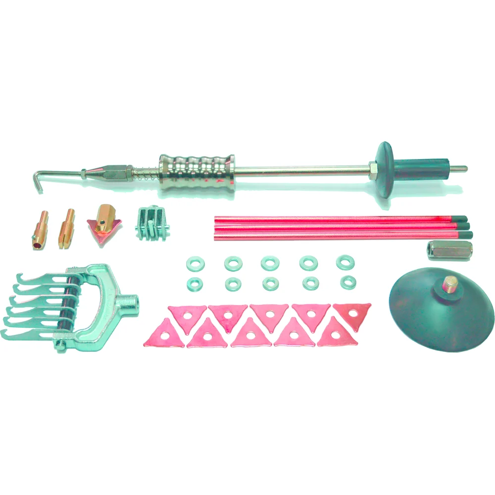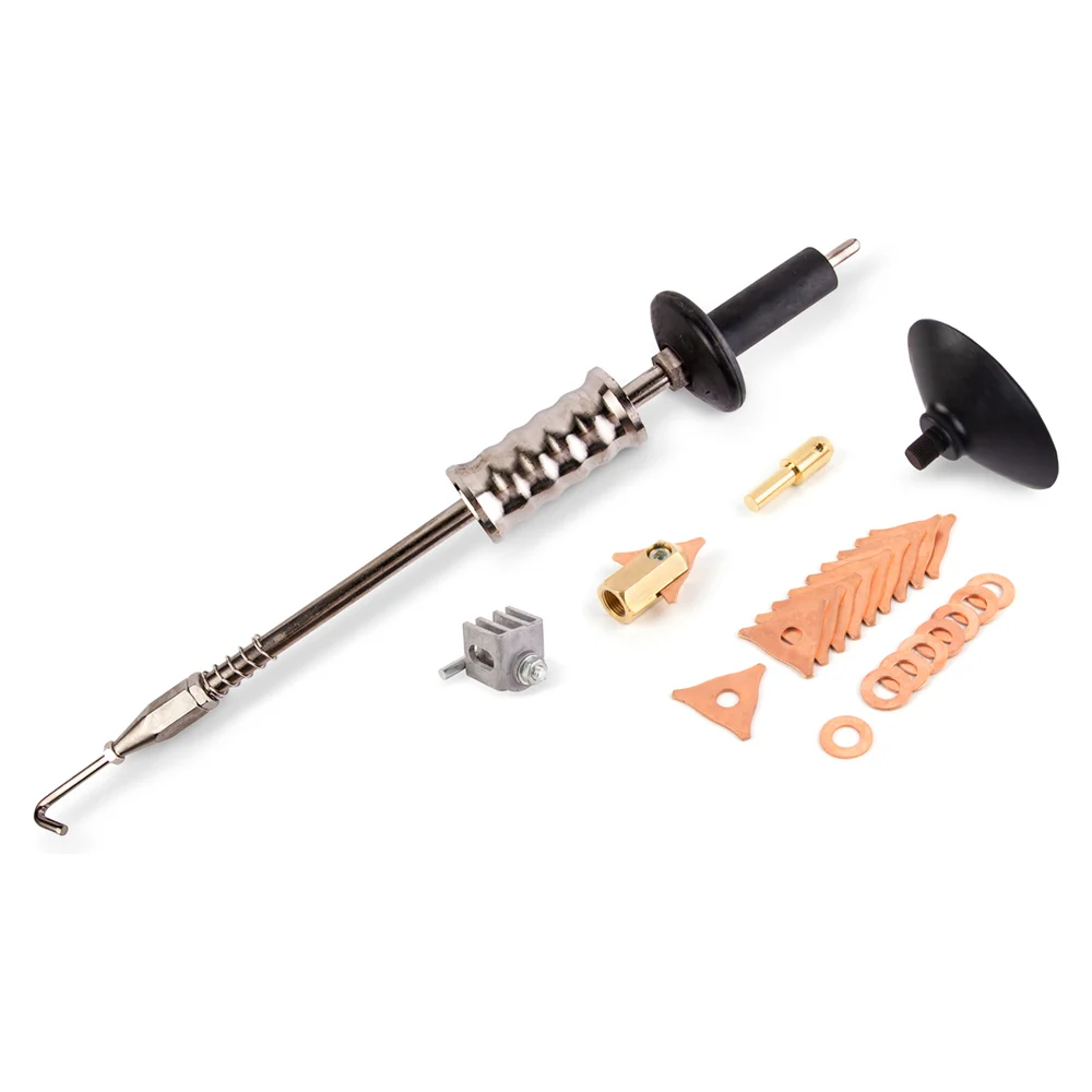 Комплектация Споттер WDK-5000; Универсальный обратный молоток F004; Адаптер для приварки шайб F011; Адаптер для приварки треугольных шайб F013; Держатель кабеля массы F018; Вакуумная присоска для обратного молотка F019; Треугольная шайба F015 - 10шт; Шайба приварочная омедненная F017 - 10шт