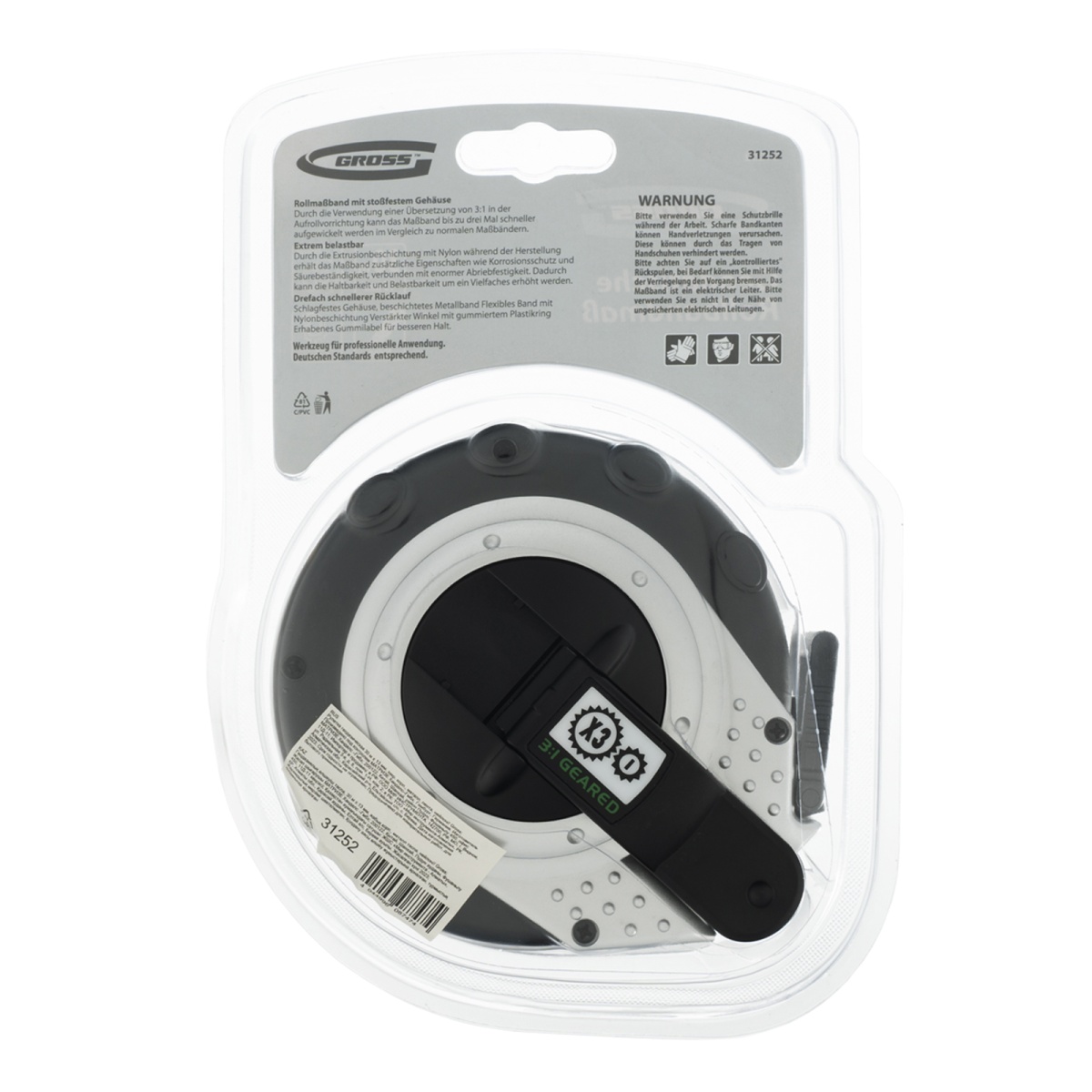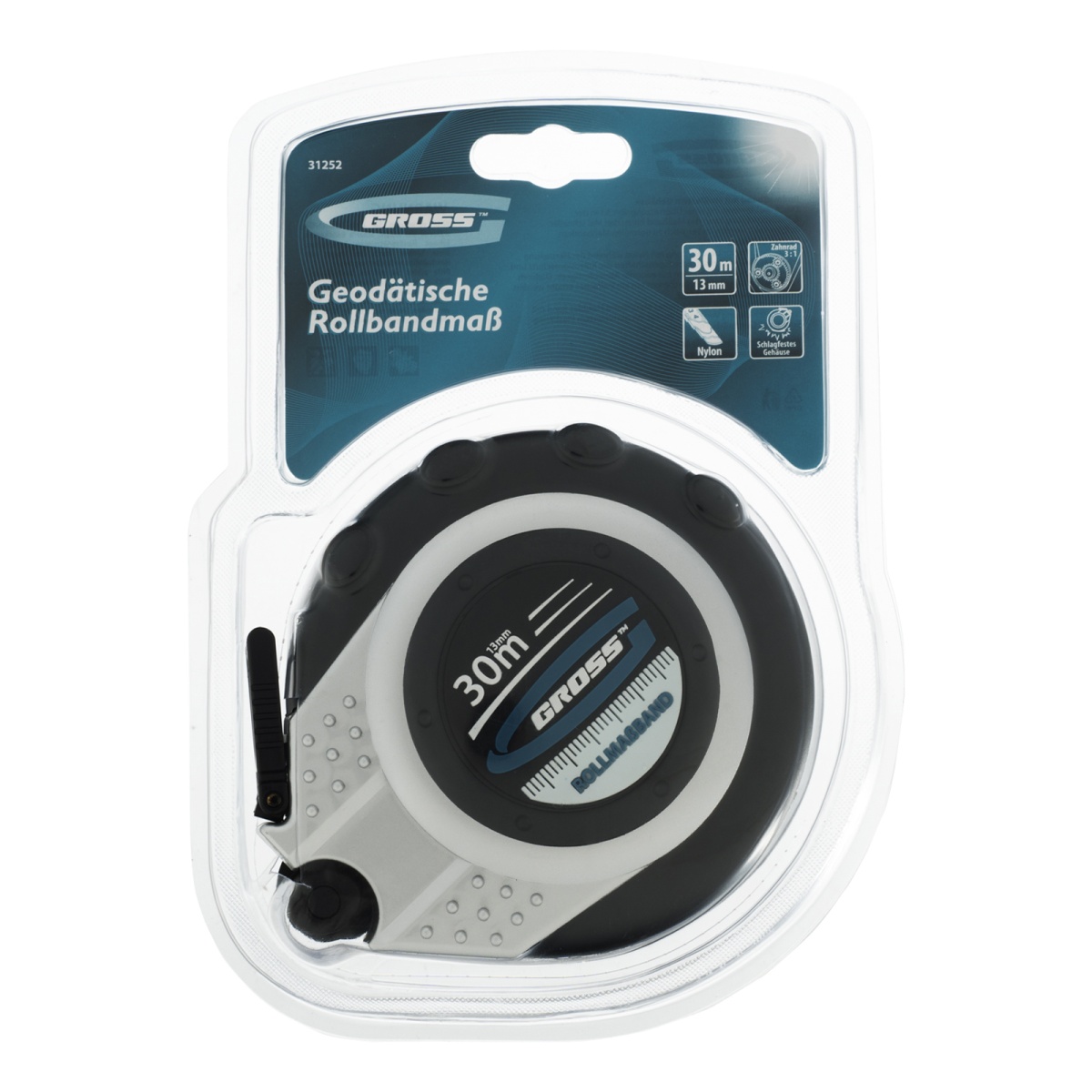 Наличие клапана для сброса давления Рулетка геодезическая 30 м х 13 мм, закрытый корпус, металлическая лента, нейлон Gross