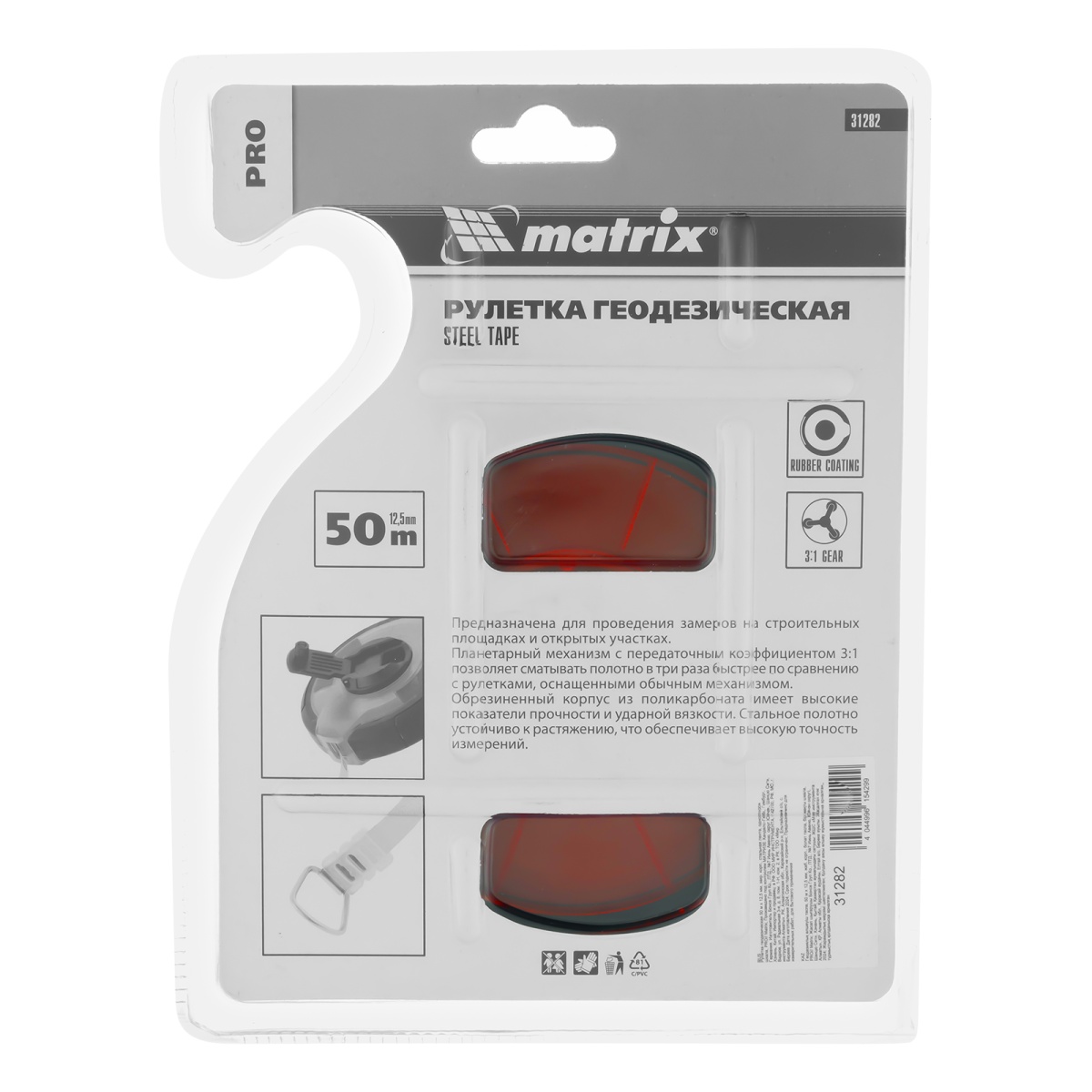 Купить Рулетка геодезическая 50 м х 12,5 мм, закрытый корпус, стальная лента, односторонняя шкала, Pro Matrix V6116 по лучшей цене с доставкой - интернет магазин №1 в России