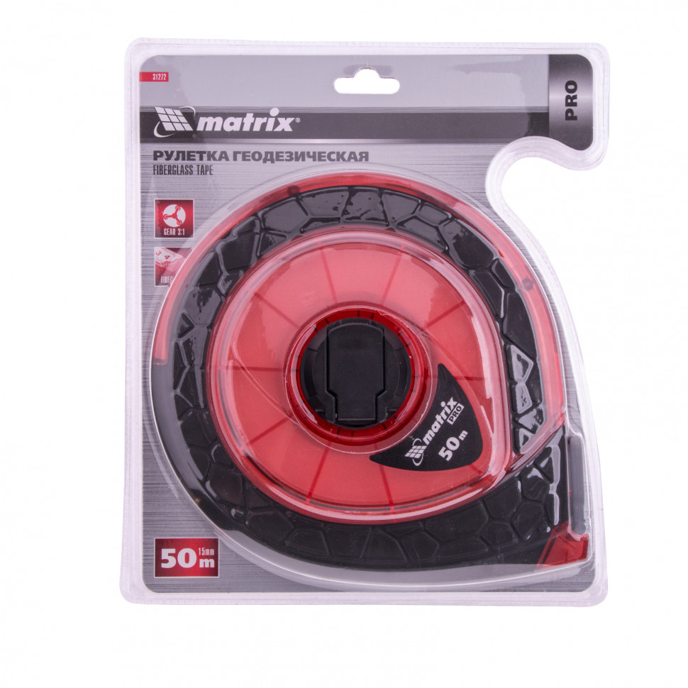 Рулетка геодезическая 50 м х 15 мм, закрытый корпус, фибергласовая лента, двусторонняя шкала, Pro Matrix