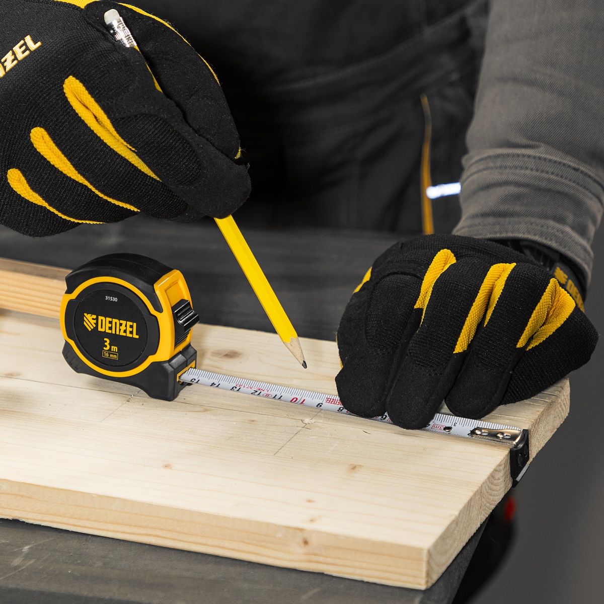 Рулетка 3м х 16мм, двухкомп. корпус, магнитный обрезиненный зацеп Denzel