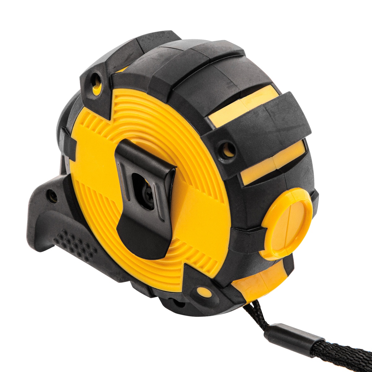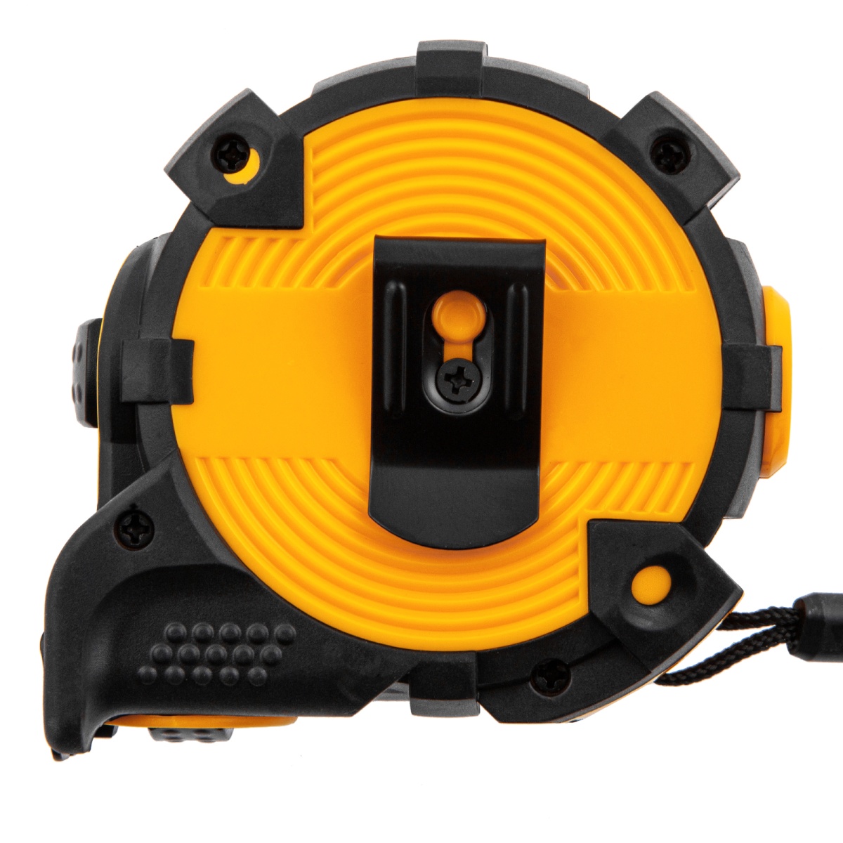 Наличие клапана для сброса давления Рулетка 5м х 19мм, автоматич. фиксац., нейлон. покрытие, магнит. зацеп, двухстор. разметка Denzel