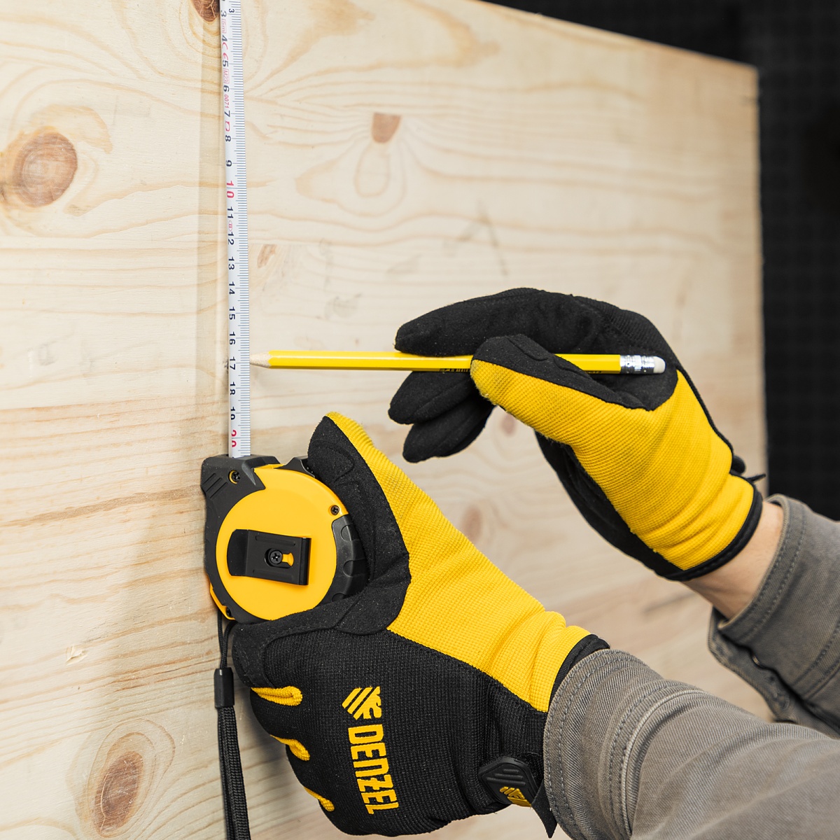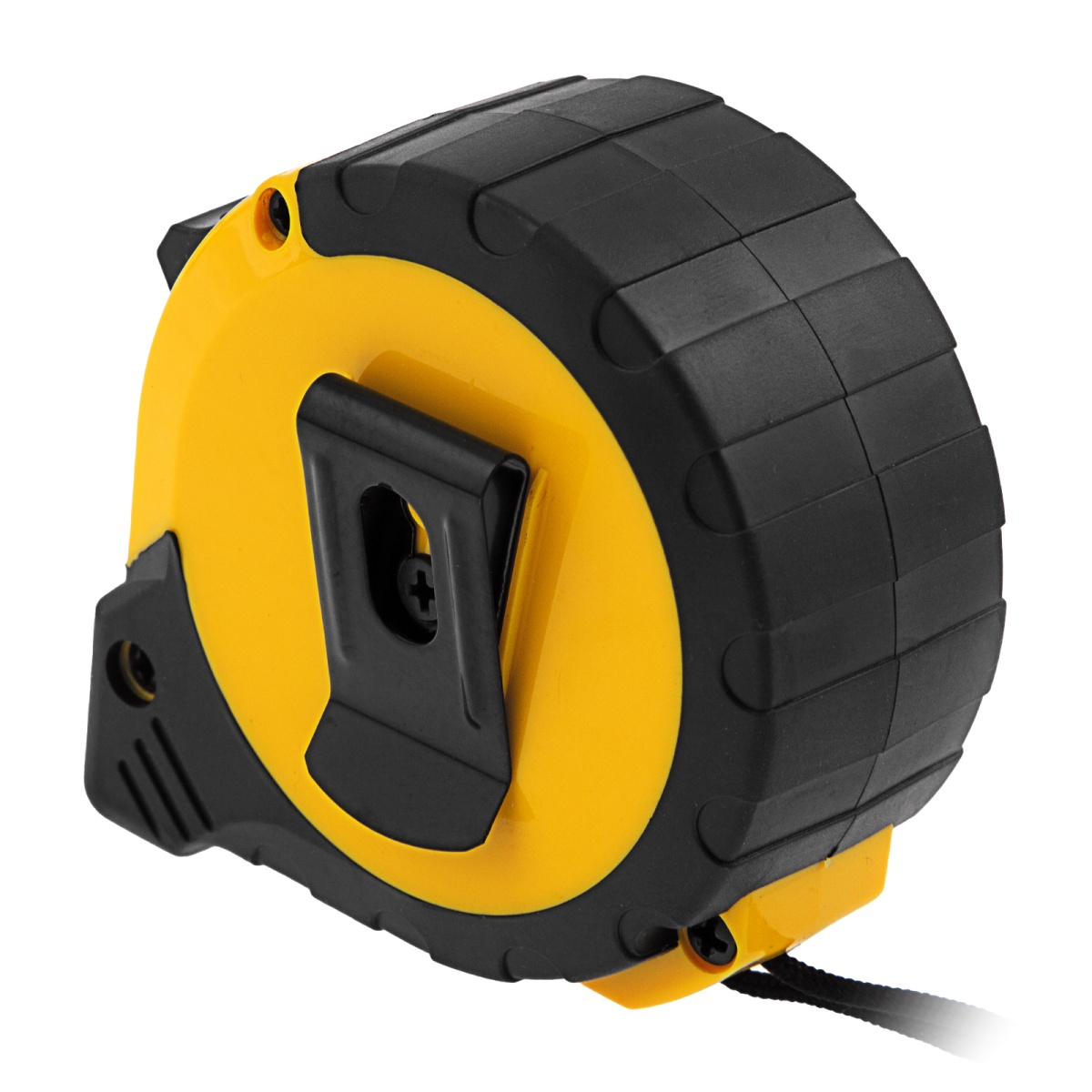 Наличие клапана для сброса давления Рулетка 5м х 19мм, двухкомп. корпус, кнопка-пауза Denzel