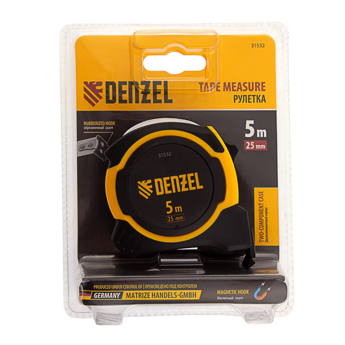 Купить Рулетка 5м х 25мм, двухкомп. корпус, магнитный обрезиненный зацеп Denzel V6036 по лучшей цене с доставкой - интернет магазин №1 в России