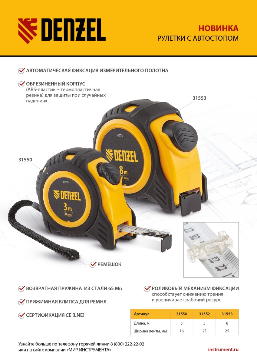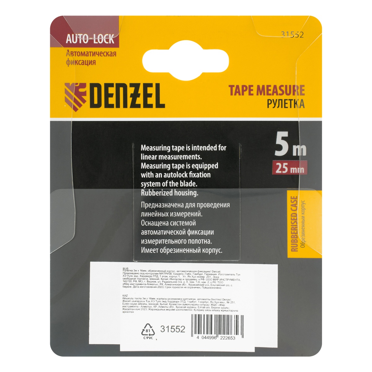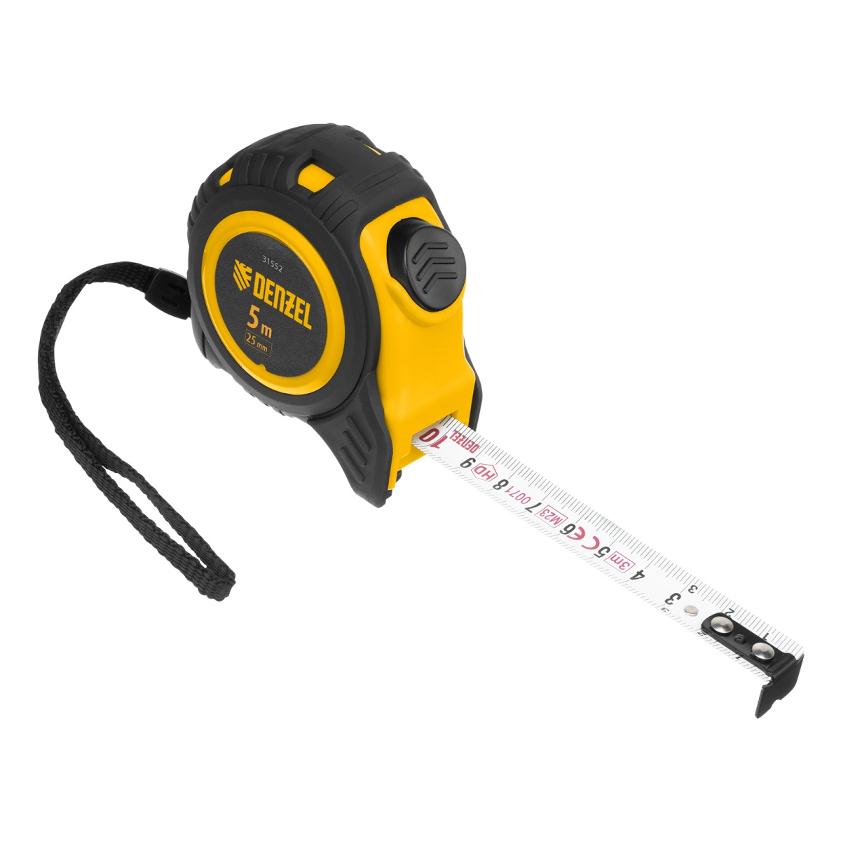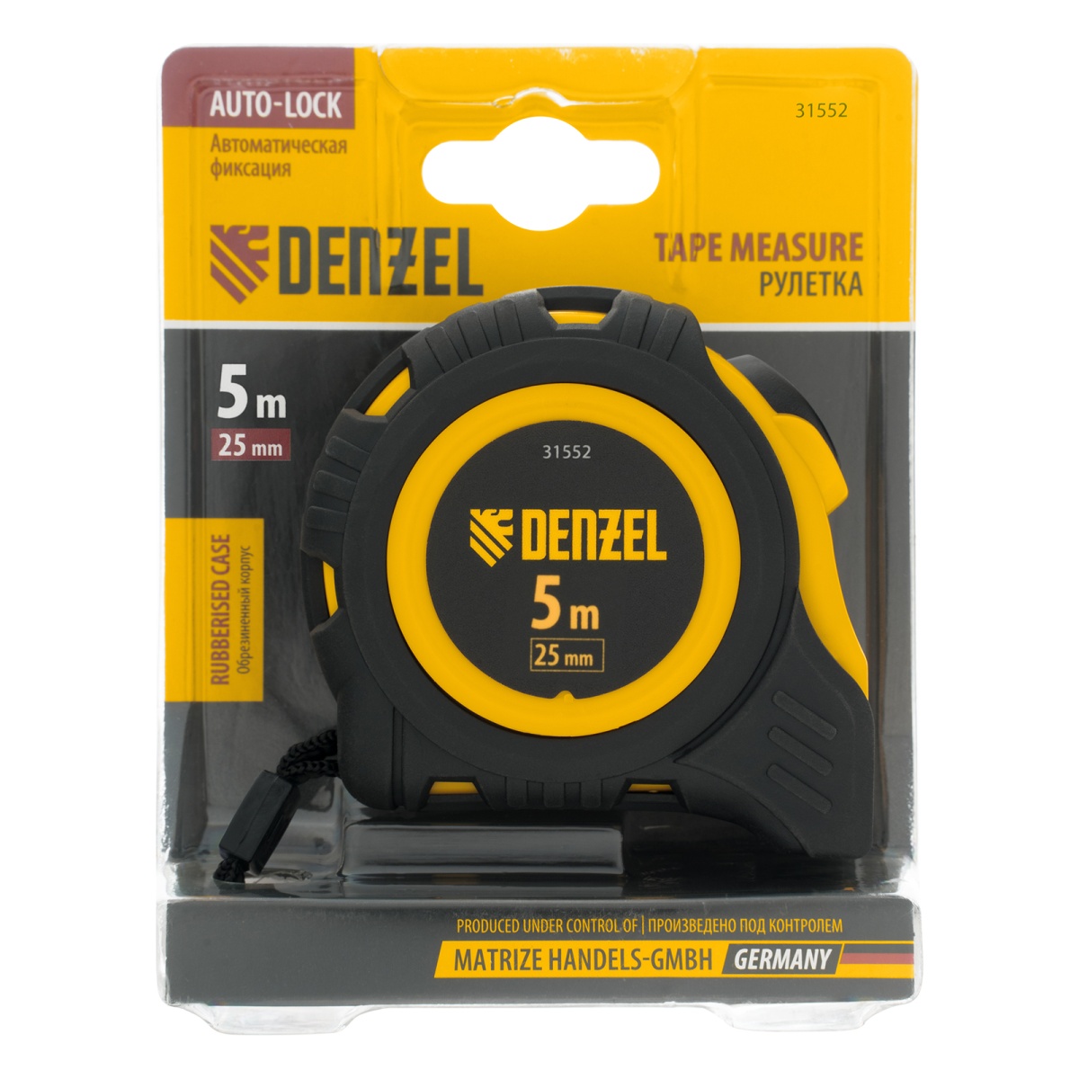 Купить Рулетка 5м х 25мм, обрезиненный корпус, автоматическая фиксация Denzel V6037 по лучшей цене с доставкой - интернет магазин №1 в России