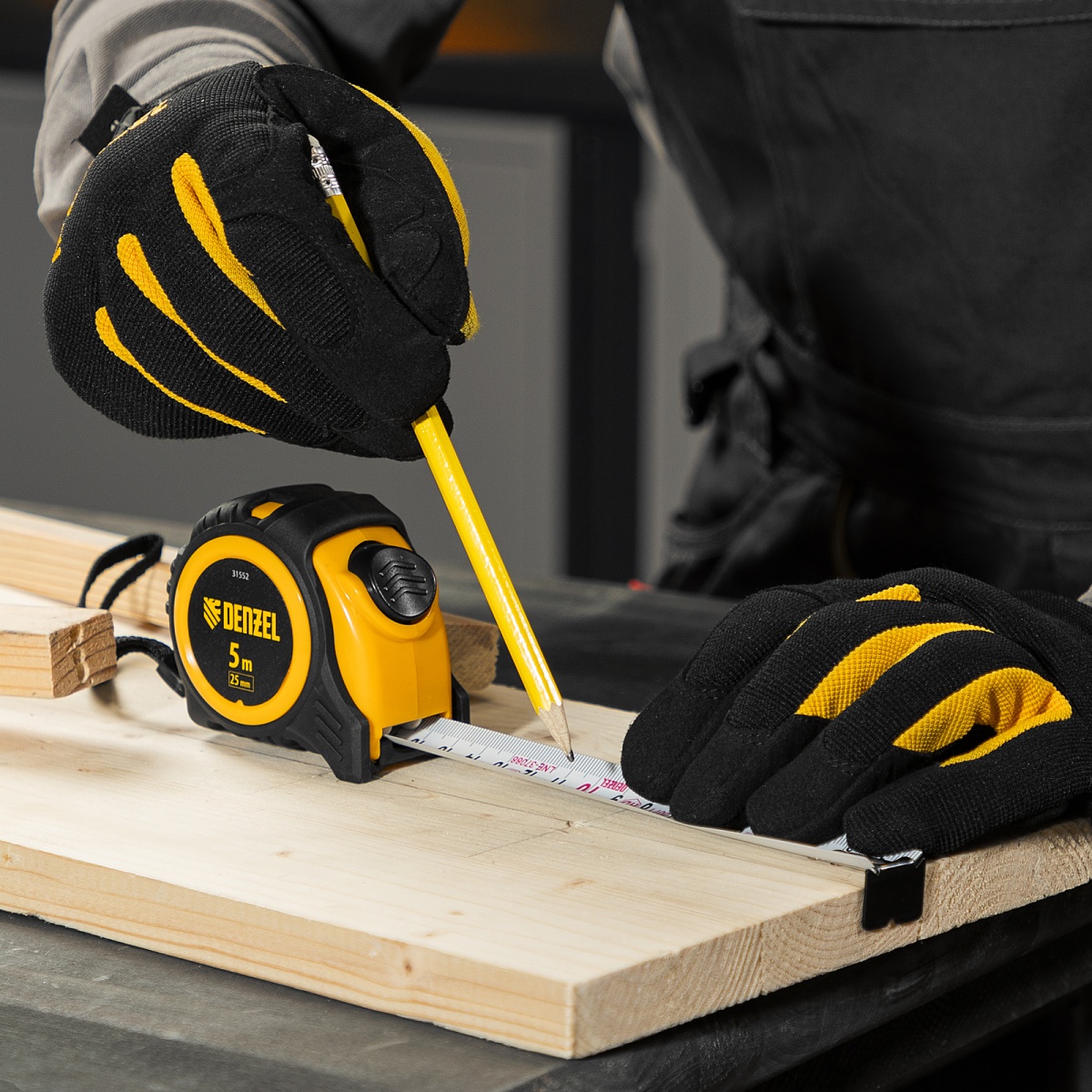 Рулетка 5м х 25мм, обрезиненный корпус, автоматическая фиксация Denzel