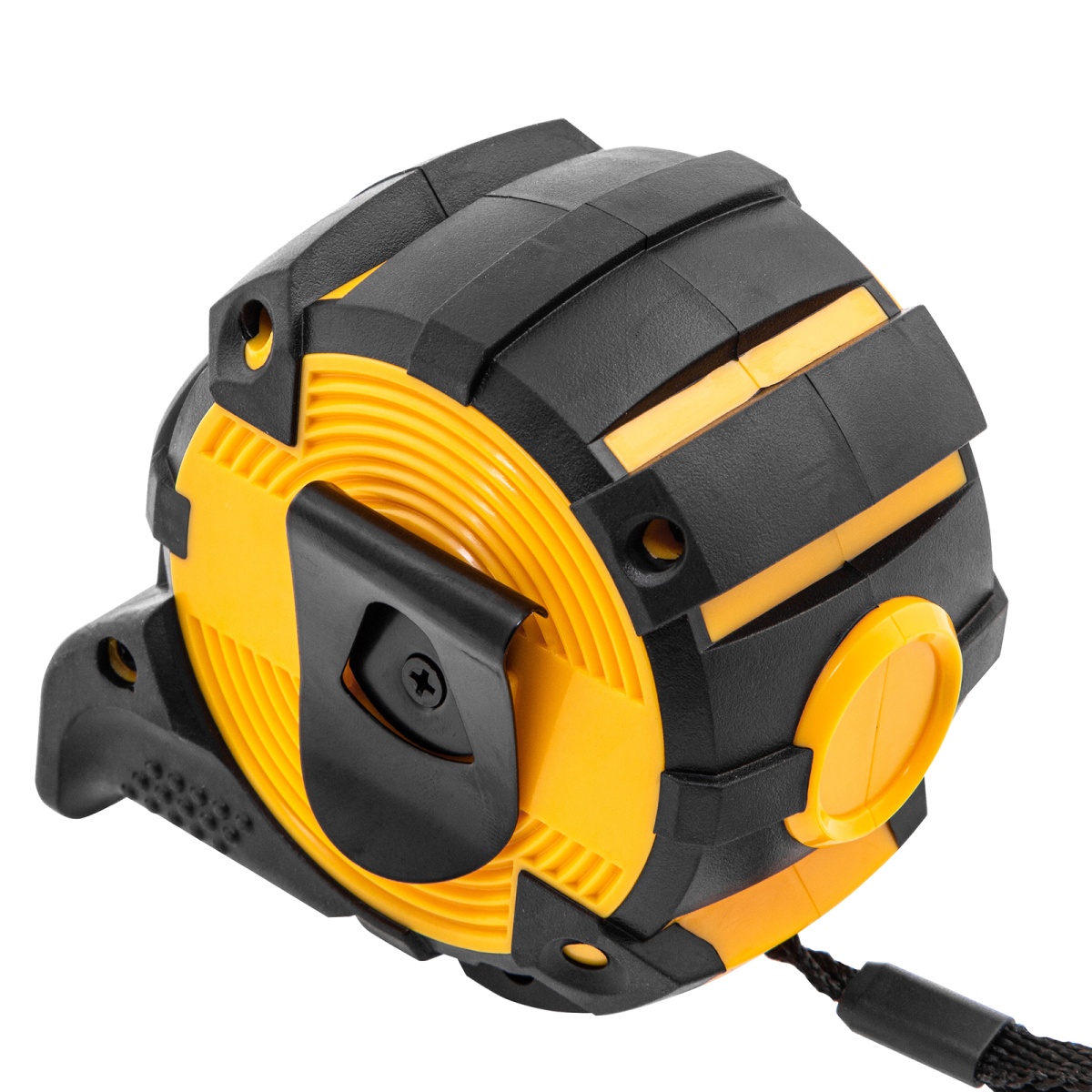 Наличие клапана для сброса давления Рулетка 5м х 32мм, автоматич. фиксац., нейлон. покрытие, магнит. зацеп, двухстор. разметка Denzel
